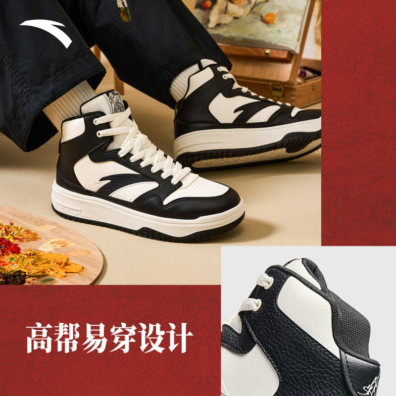 新款 男冬季 黑白滑板鞋 官方正品 安踏街顽3经典 运动鞋 熊猫高帮板鞋