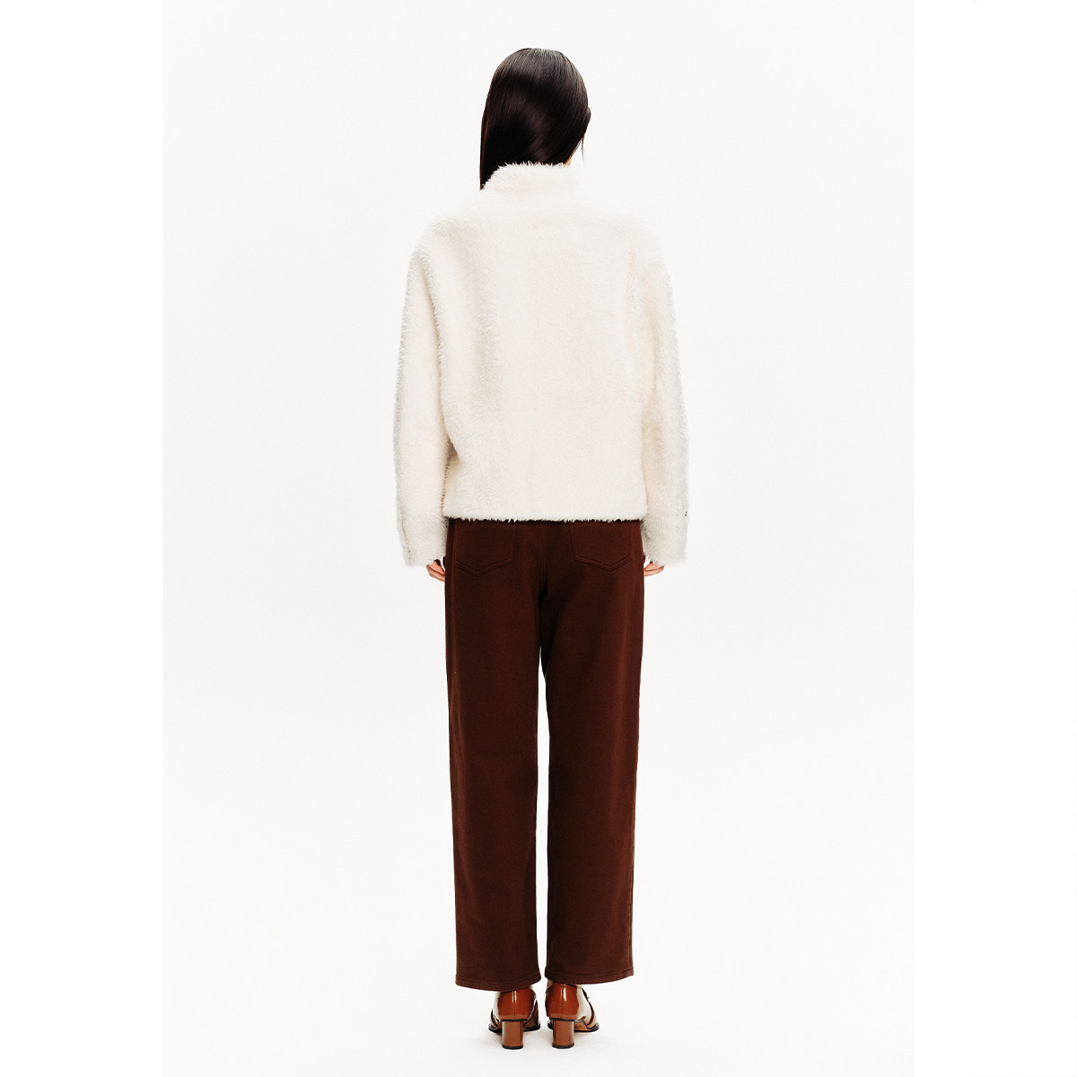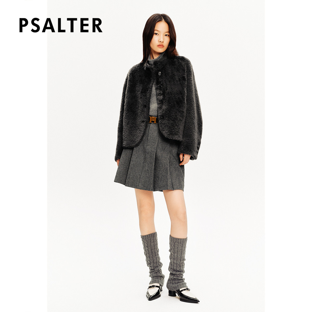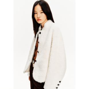 PSALTER诗篇皮毛一体小立领落肩短款 廓形皮草女外套冬款