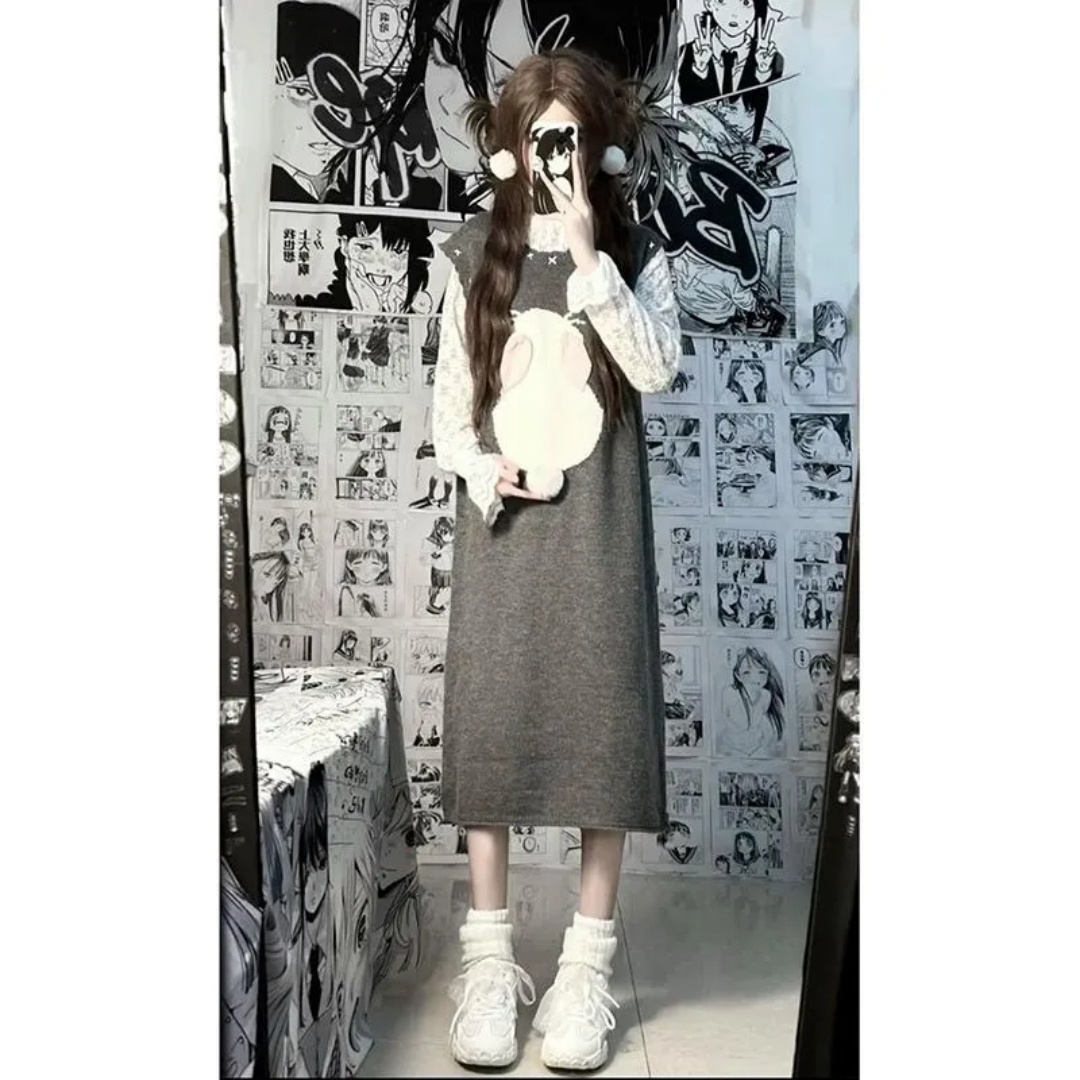 2025新款 设计感立体小兔子甜美女春秋灰色百搭显瘦针织背心连衣裙