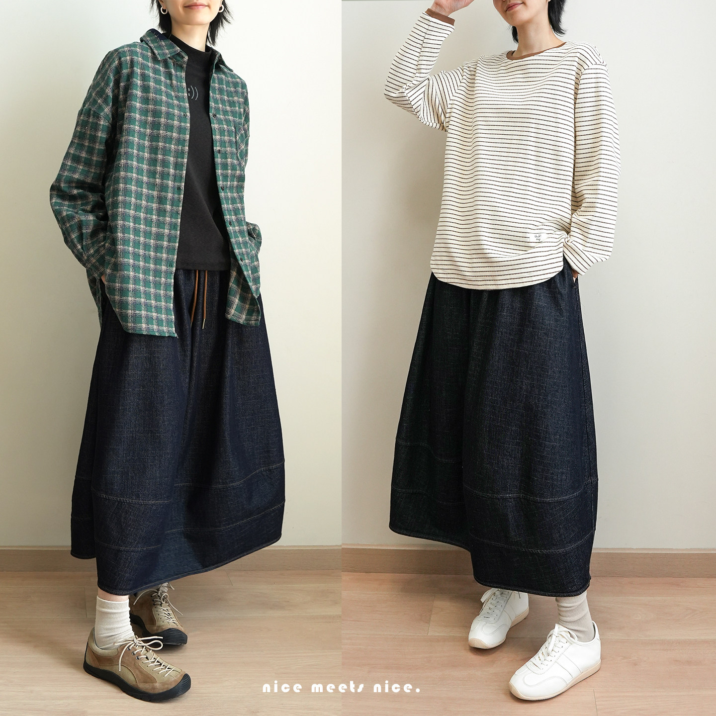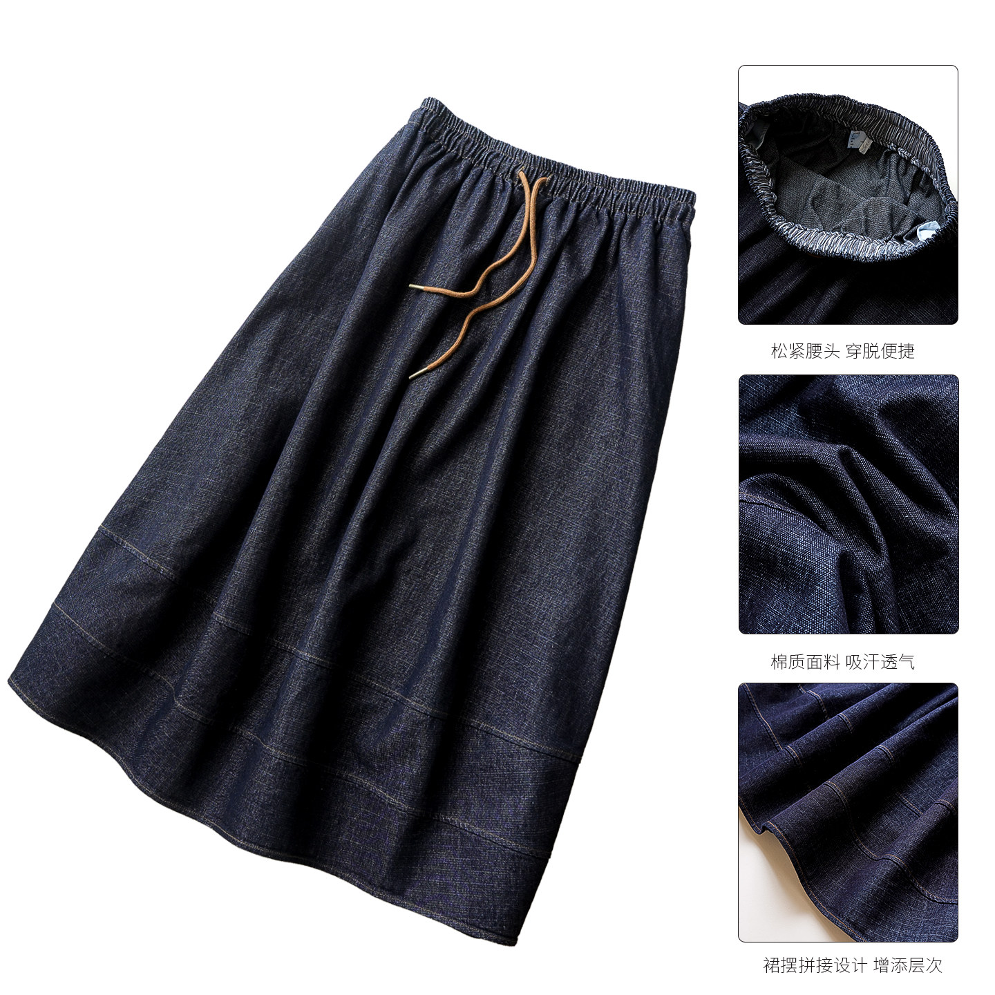 宽松牛仔裙k 文艺拼接下摆中长裙 落色牛仔 290g全棉松紧腰半裙