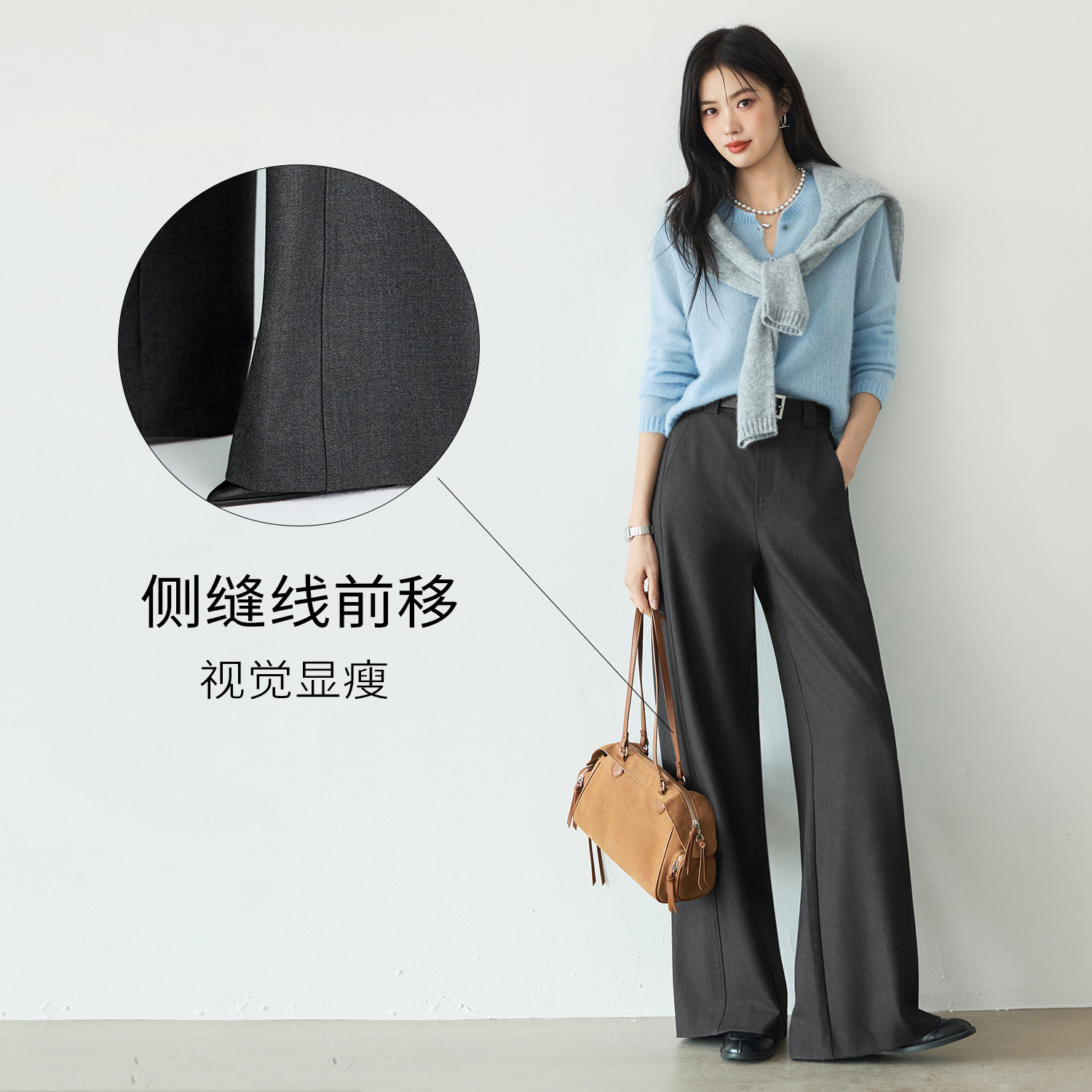 女25秋裤 灰色拖地裤 伊芙丽简约利落高质感羊毛西装 子 蒋欣同款