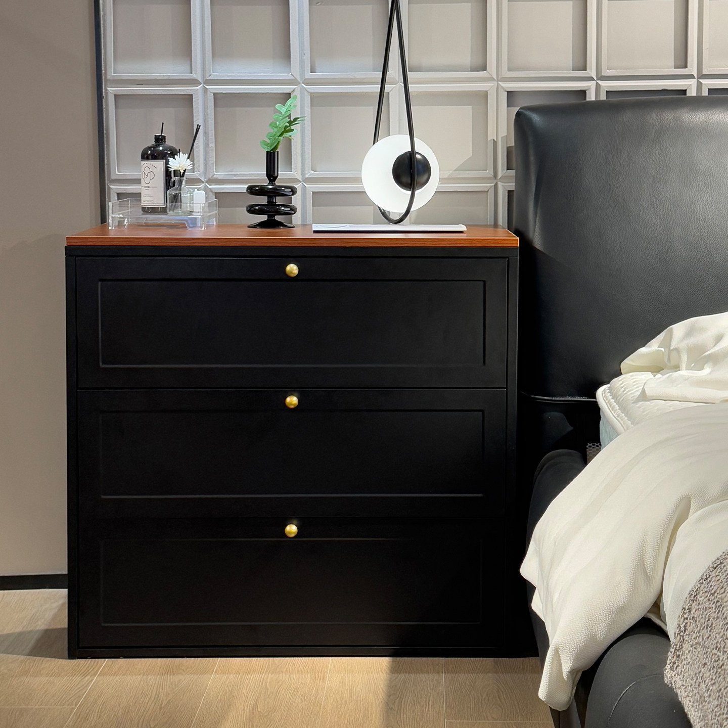 中古风收纳柜抽屉式 零食柜黑色五斗柜卧室多层床头柜 收纳箱免安装