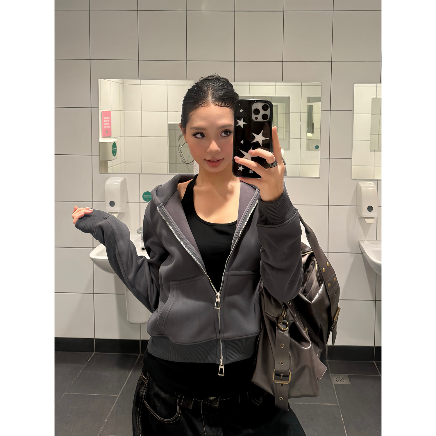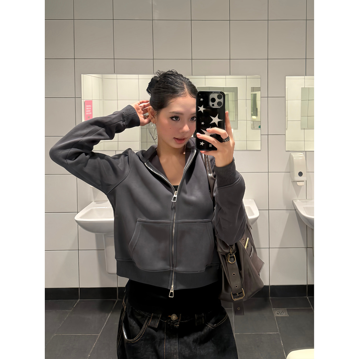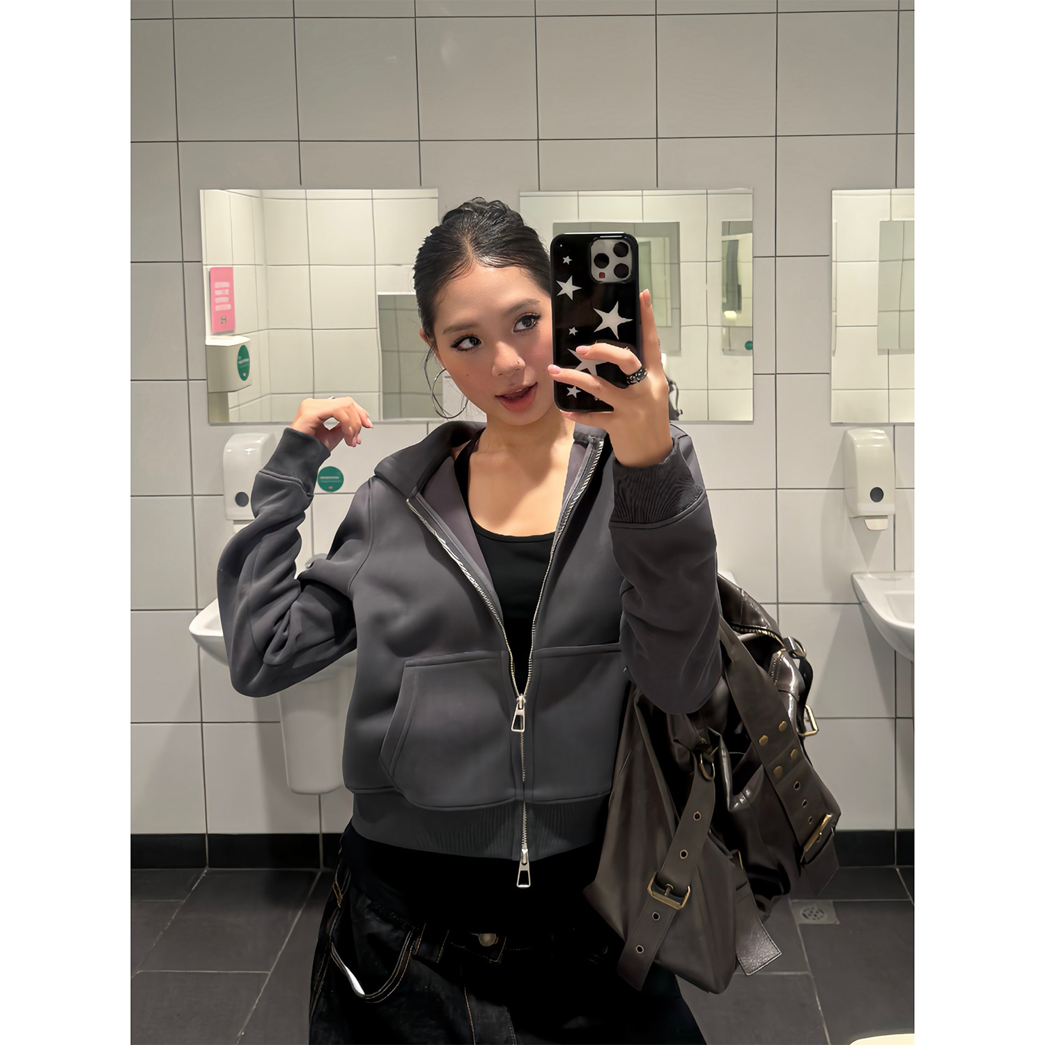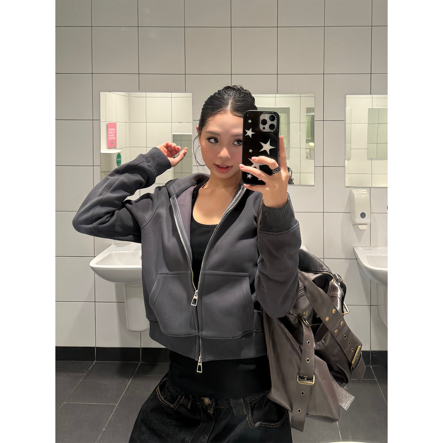 连帽卫衣男女宽松休闲百搭帽衫 F383 正肩短款 复古基础款 外套 美式