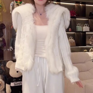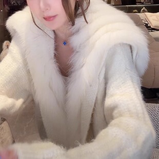 外套网红爆款 狐狸毛针织车条海军领短款 春秋新款 女 白月光