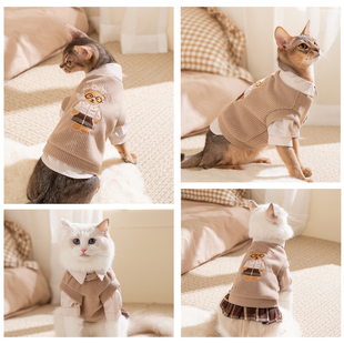 猫咪衣服学院风可爱卡通小熊情侣装 两件套德文成猫幼猫衣服 打底衫
