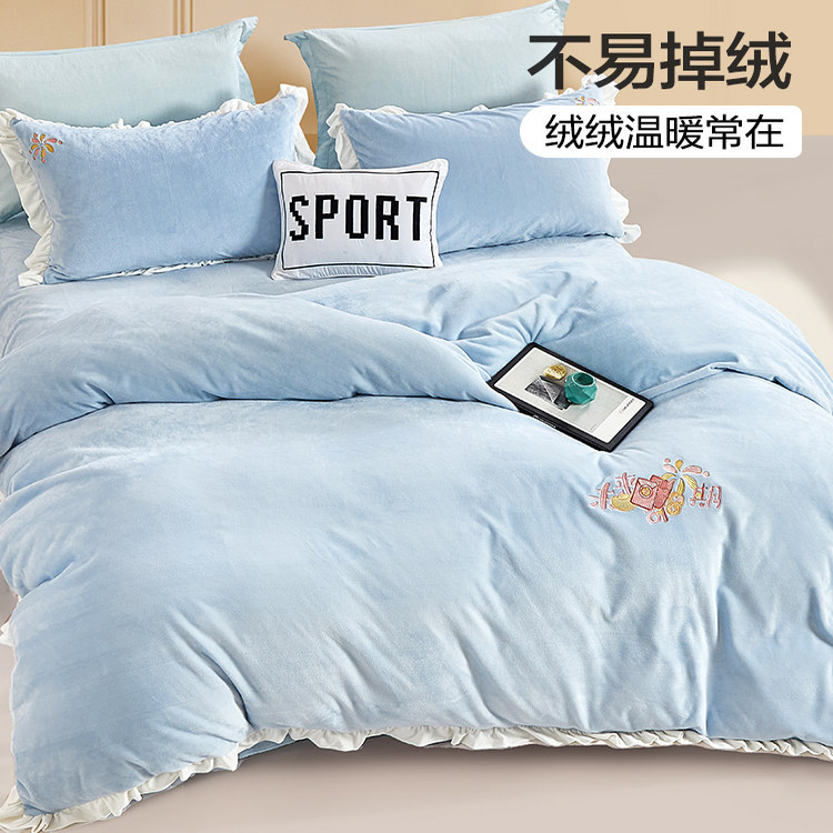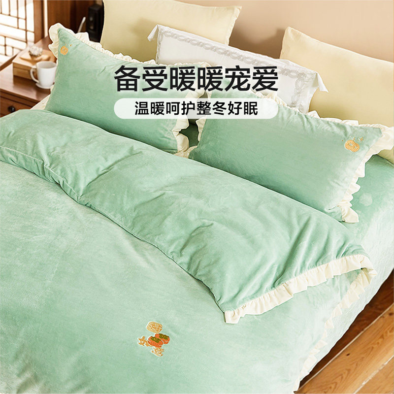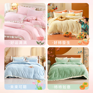 富安娜家暖绒四件套抗静电床单被套加厚 李佳琦直播间
