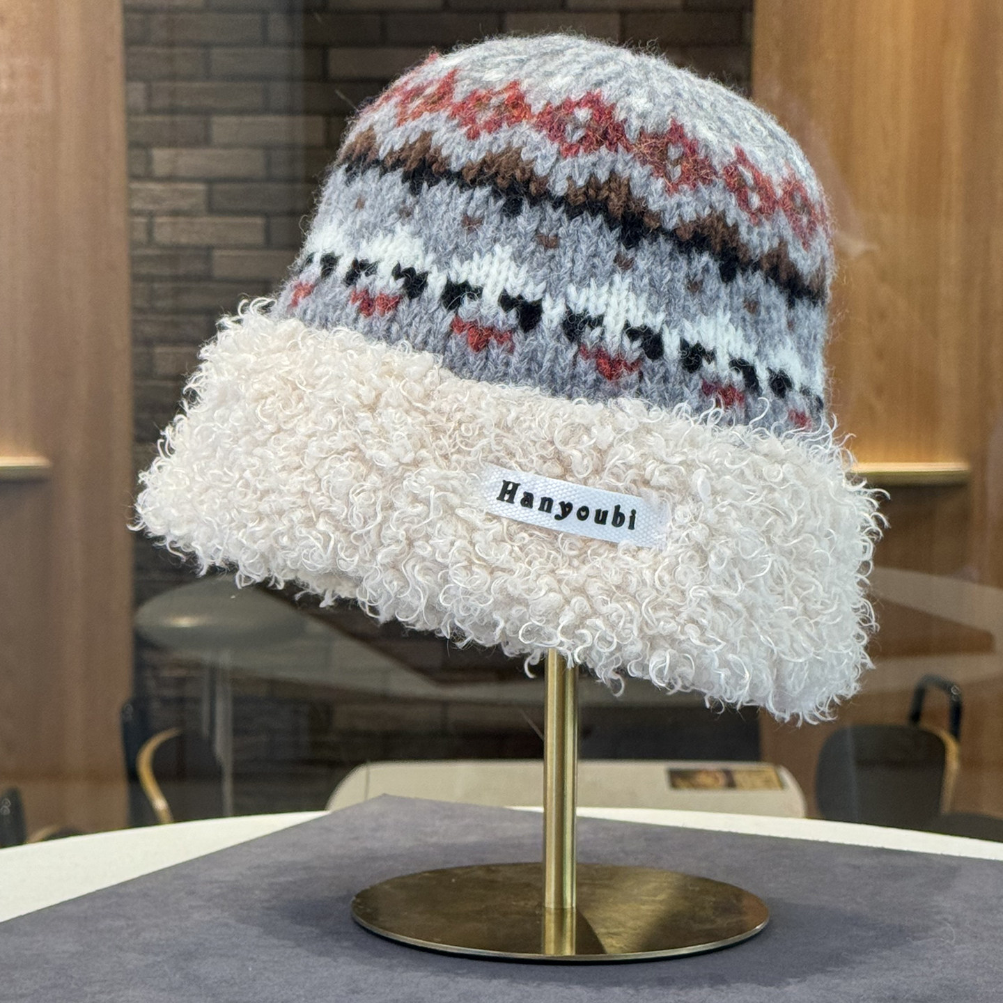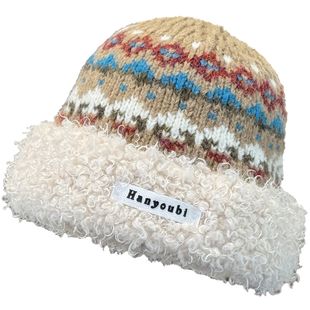 黑色羊羔毛绒渔夫帽女秋冬保暖水桶帽显脸小毛线帽子圆顶2025新款