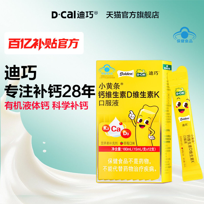 迪巧小黄条液体柠檬酸钙青少年成长补钙4岁以上儿童钙片 百补