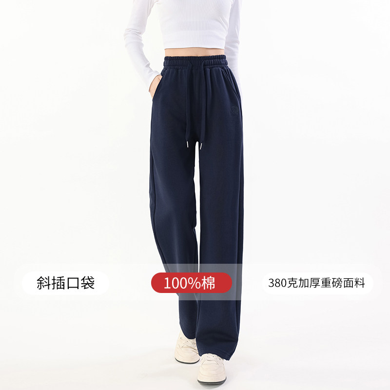女2025新款 宽松加绒裤 春秋女装 休闲长裤 子 高腰卫裤 纯棉直筒运动裤