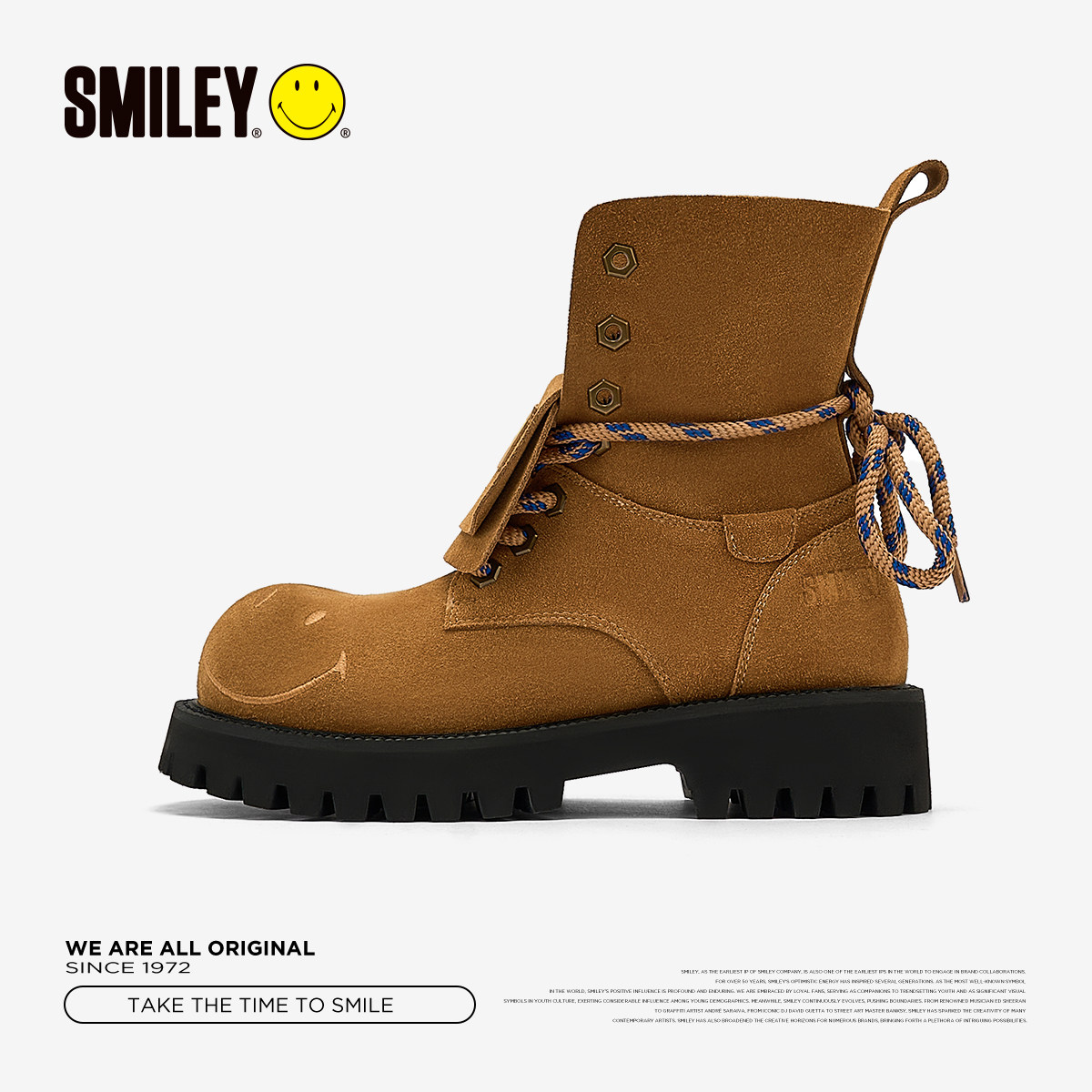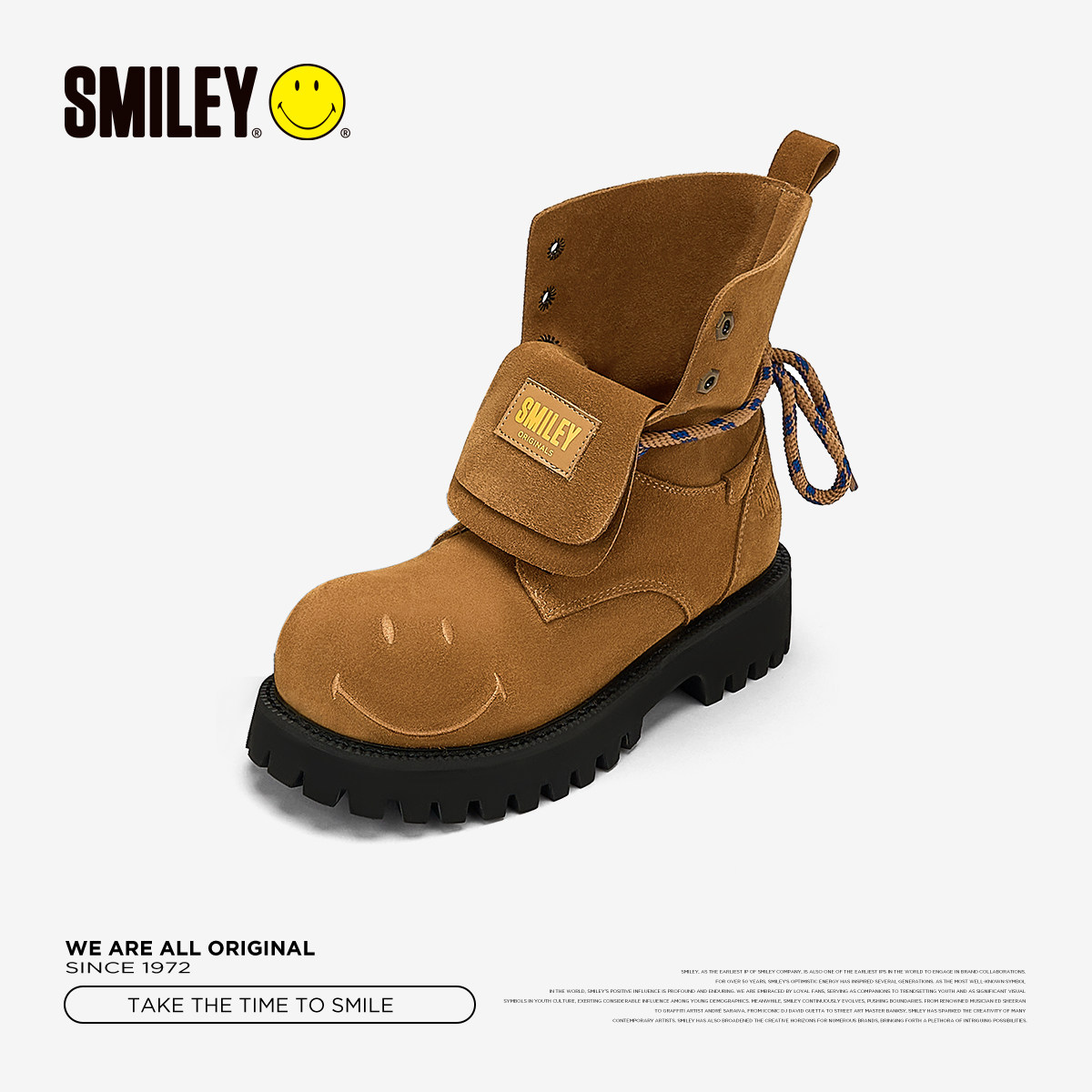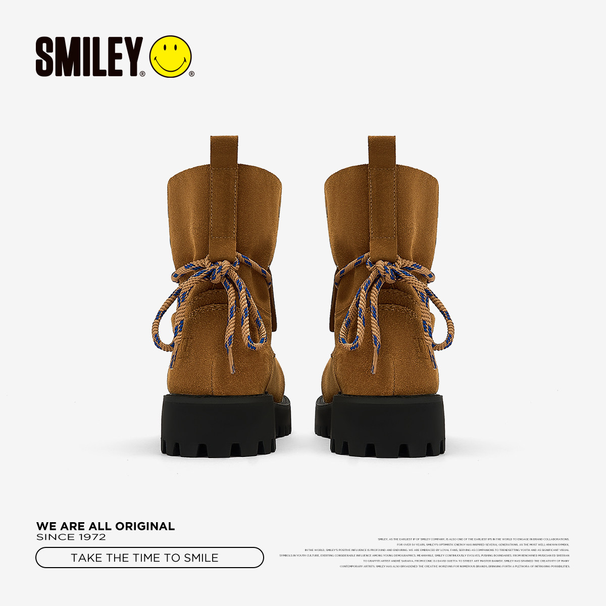 子 SMILEY笑脸厚底增高女复古大头棕色绑带马丁靴鞋 周深同款