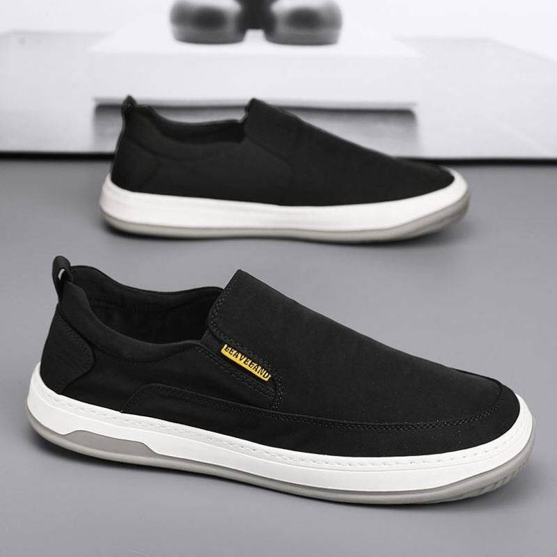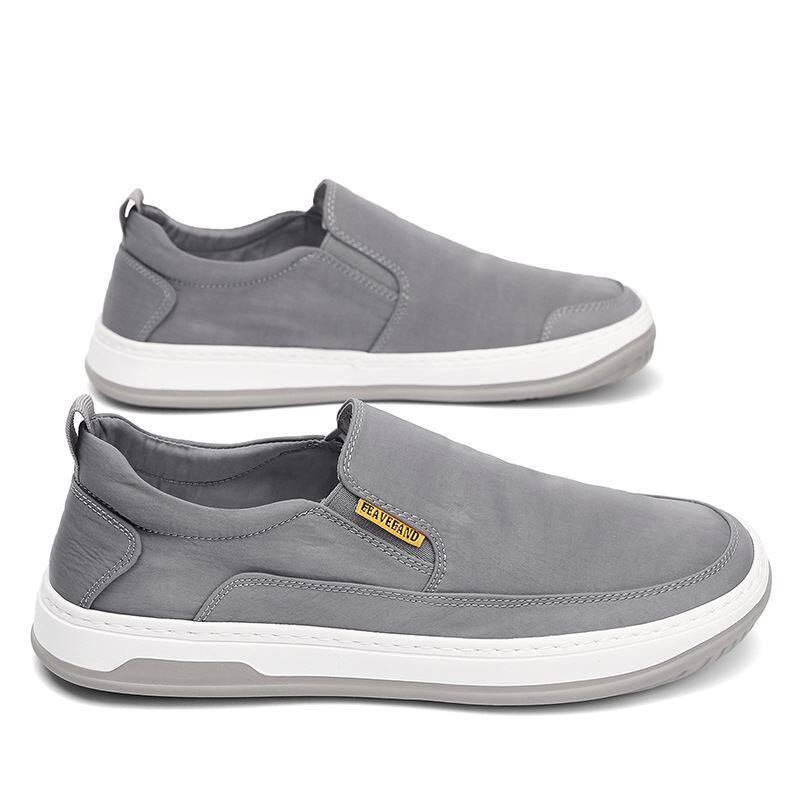 运动防滑板鞋 透气休闲一脚蹬软底工作老北京布鞋 夏季 冰丝帆布男鞋