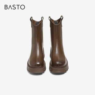 靴时尚 百思图2025冬季 时装 商场同款 简约粗跟女中靴BV239DZ5 新款