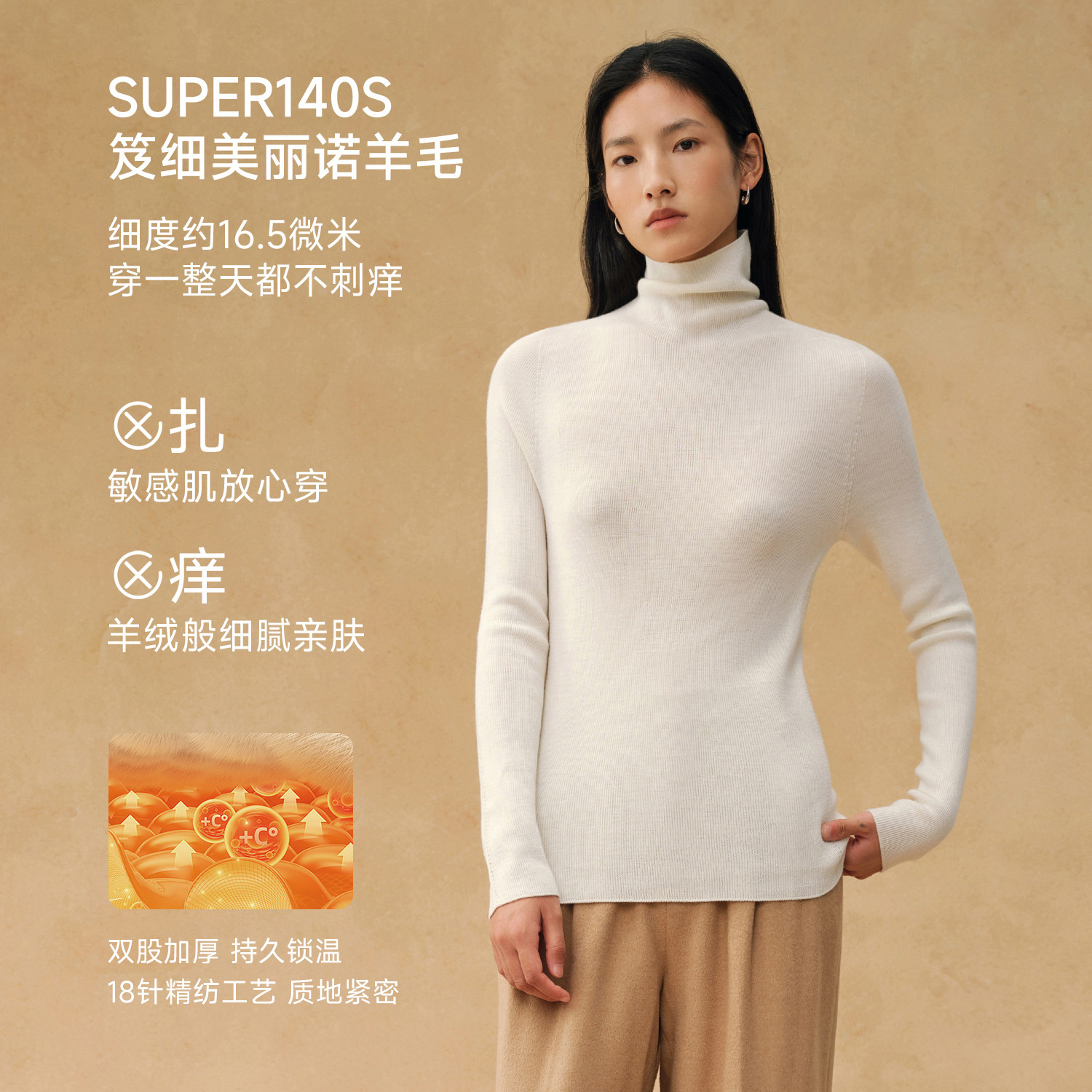 TEASEL「加厚省心云朵」140S精纺羊毛可机洗可烘干柔暖多领型打底