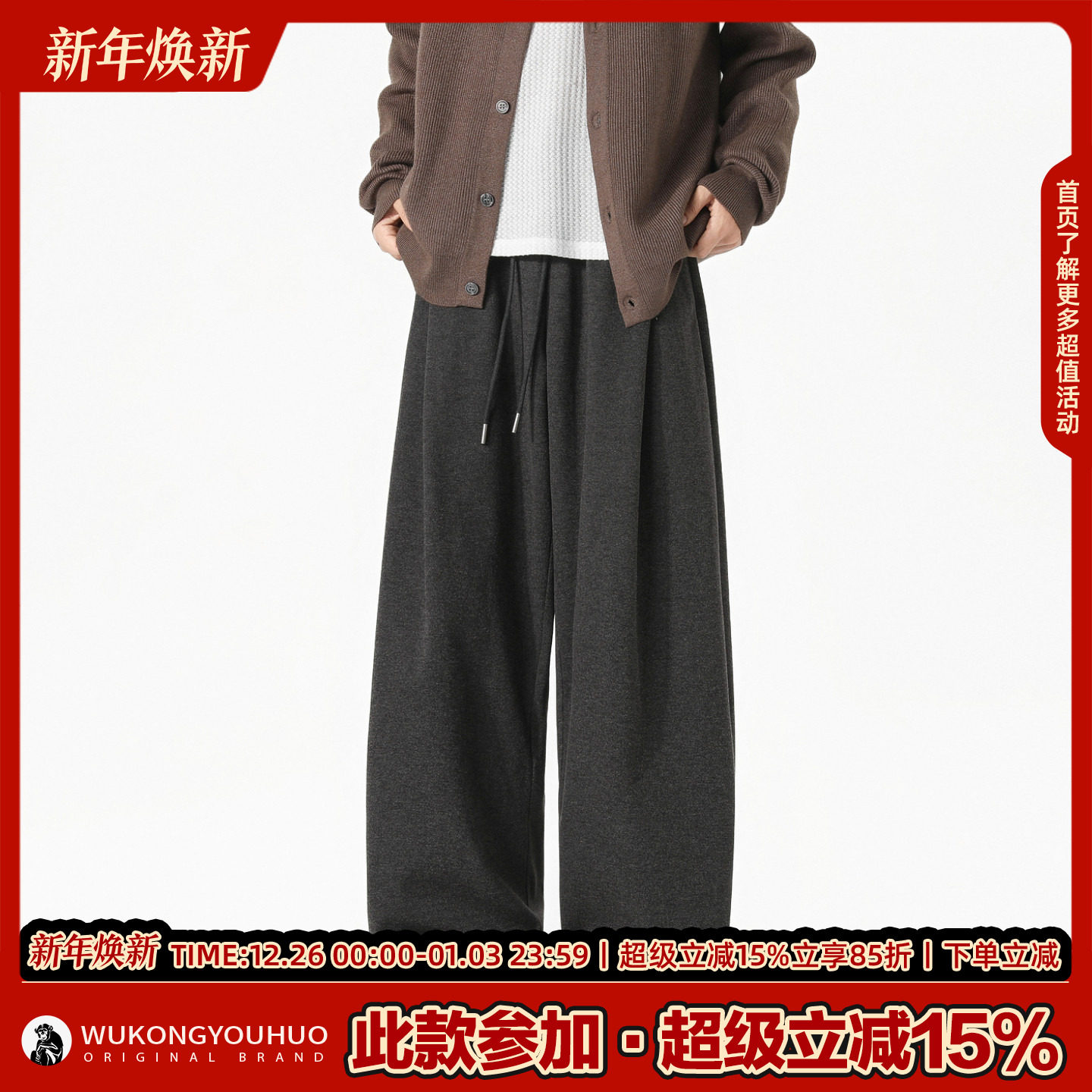 宽松百搭休闲裤 悟空有货潮牌毛呢高级感抽绳松紧运动卫裤 男女秋季