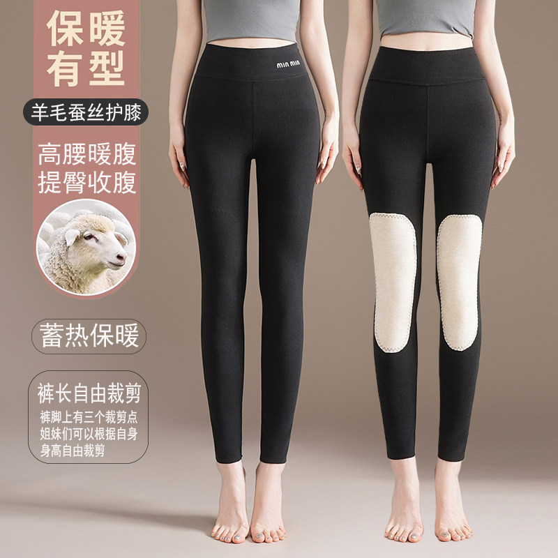 打底裤 女内穿无痕自发热羊绒裤 加绒冬 秋裤 高腰羊毛蚕丝德绒保暖裤