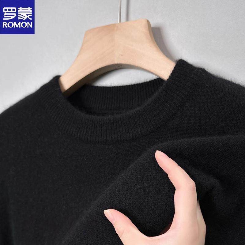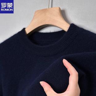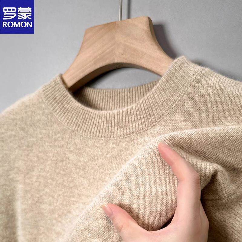 针织内搭打底衫 罗蒙秋冬款 纯色圆领套头羊绒衫 男士 保暖毛衣 羊毛衫