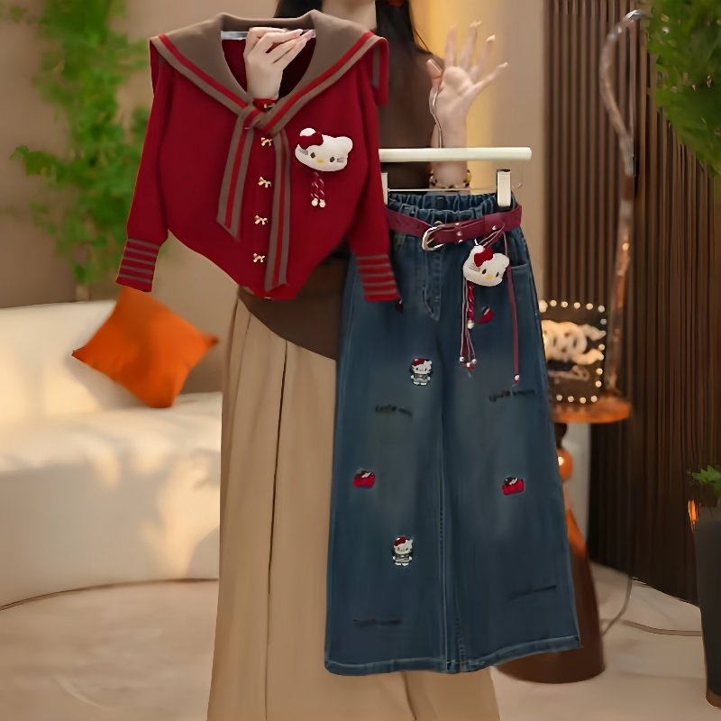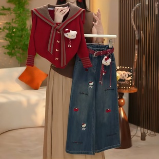 两件套 中大童卡通海军领卡通上衣牛仔裤 女童2025秋款 上新女童套装