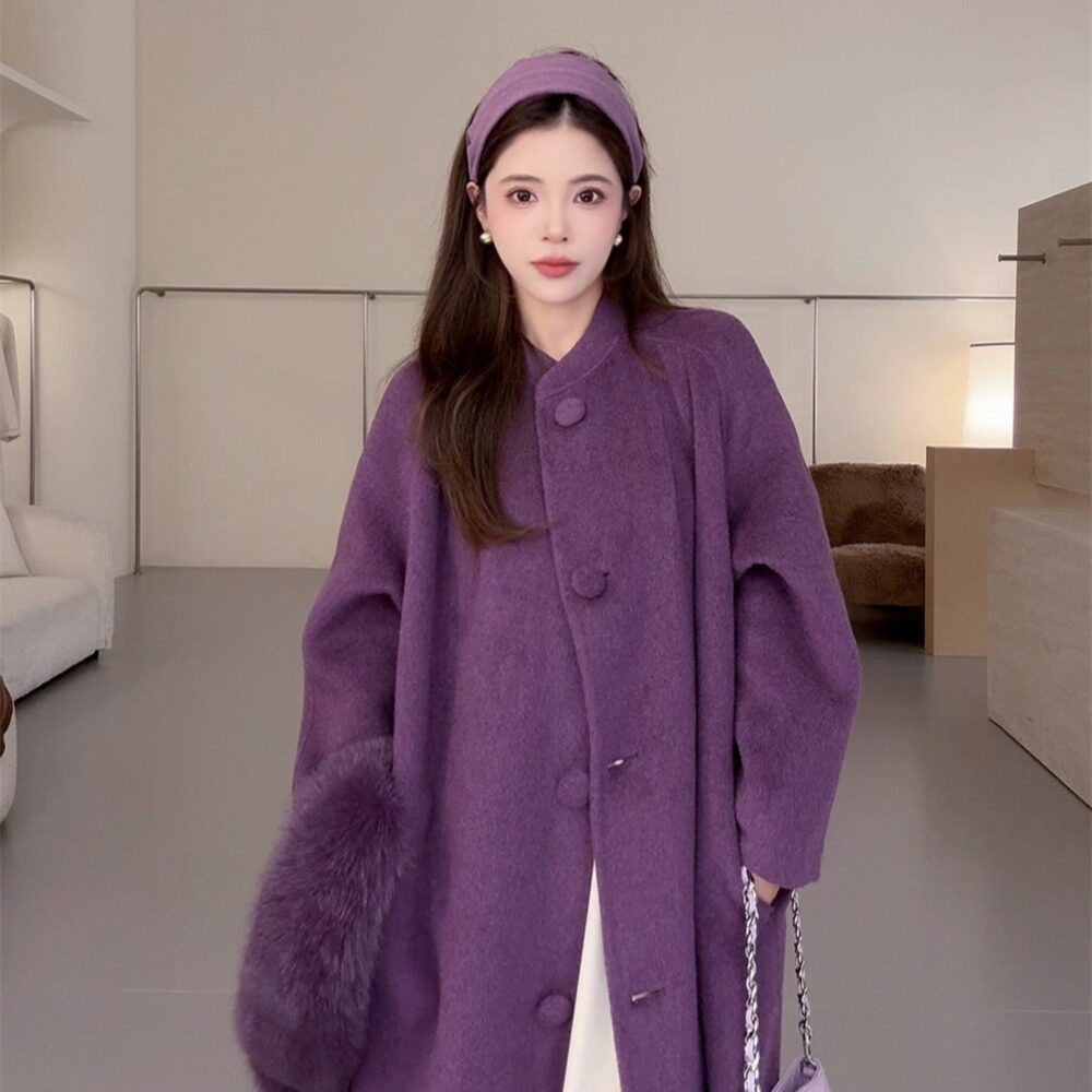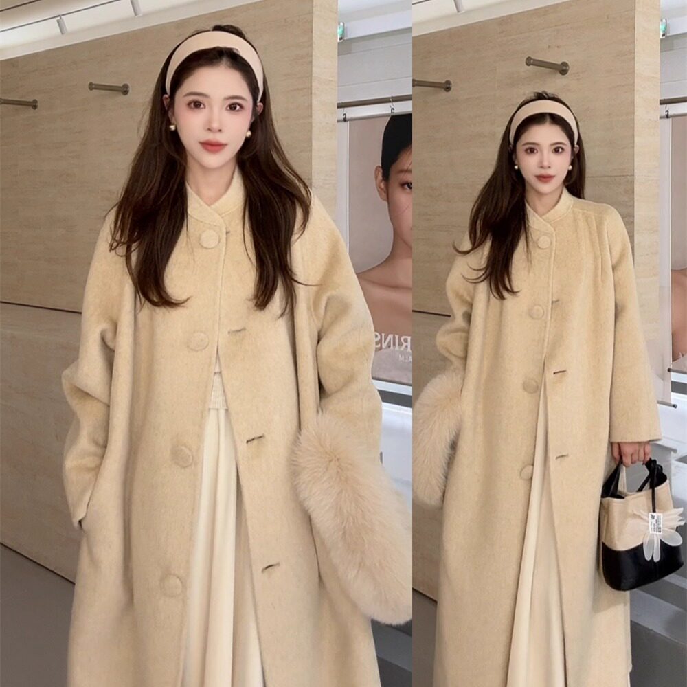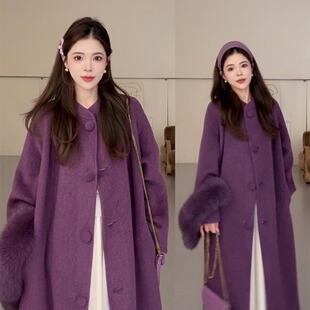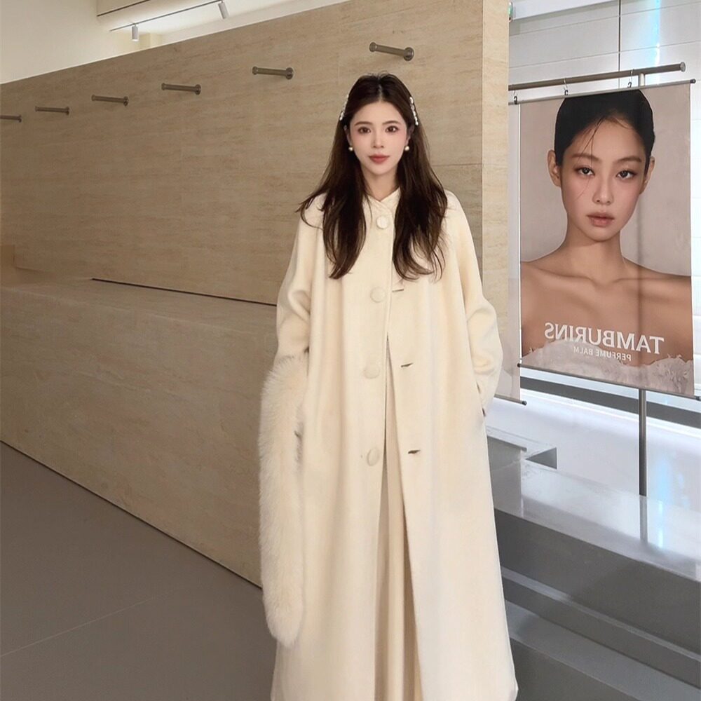 NN家秋冬气质女长款 狐狸毛领全羊毛双面呢羊绒羊毛呢大衣外套6807