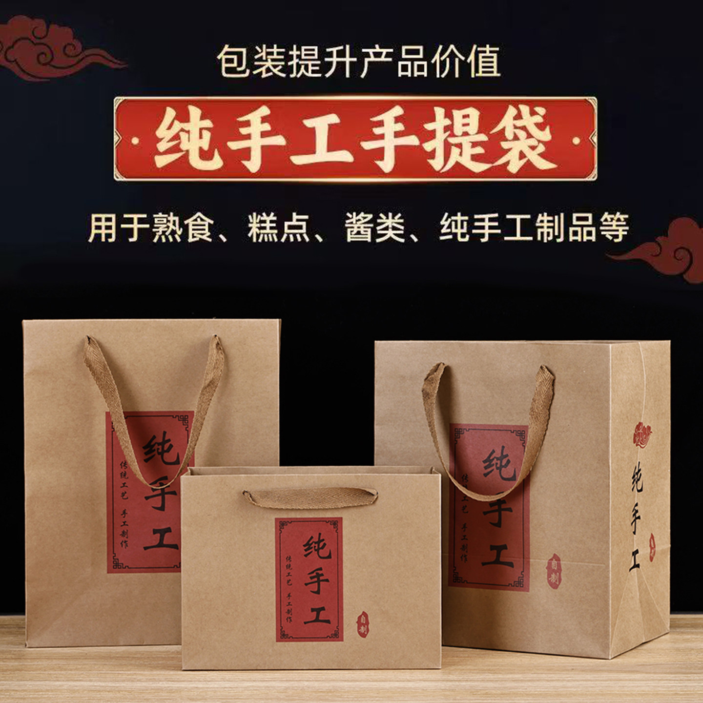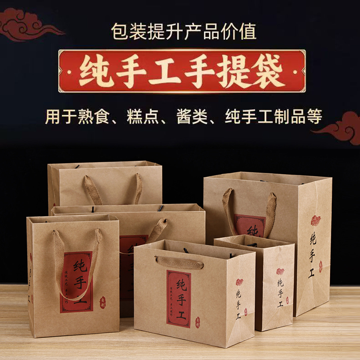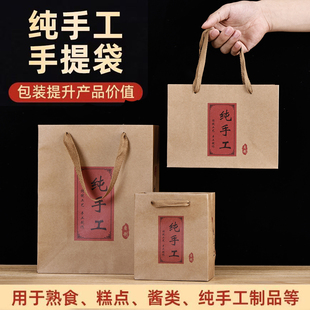新品 纸袋年货熟食食品蜂蜜袋 纯手工制作手提袋牛皮纸烘焙月饼包装