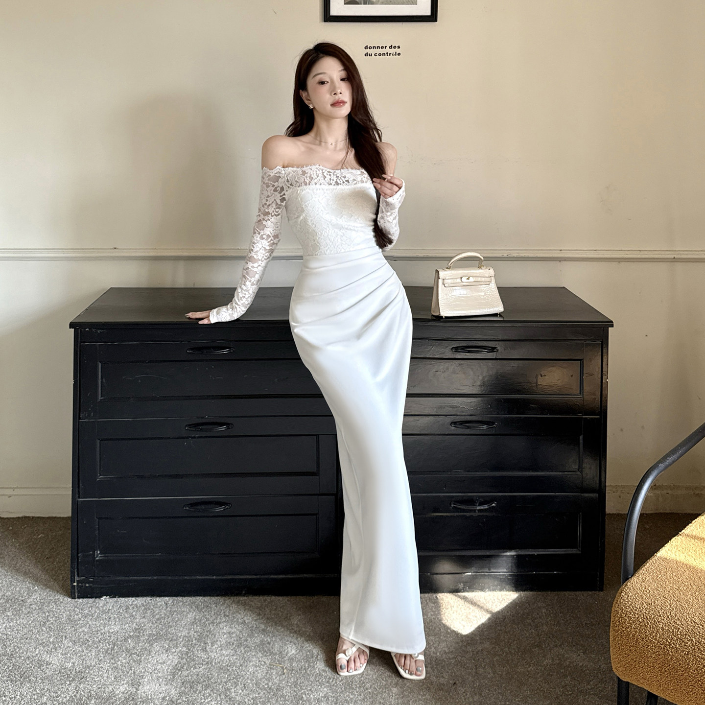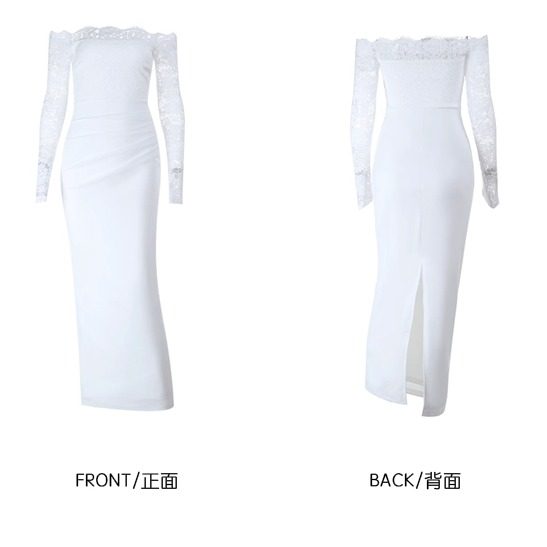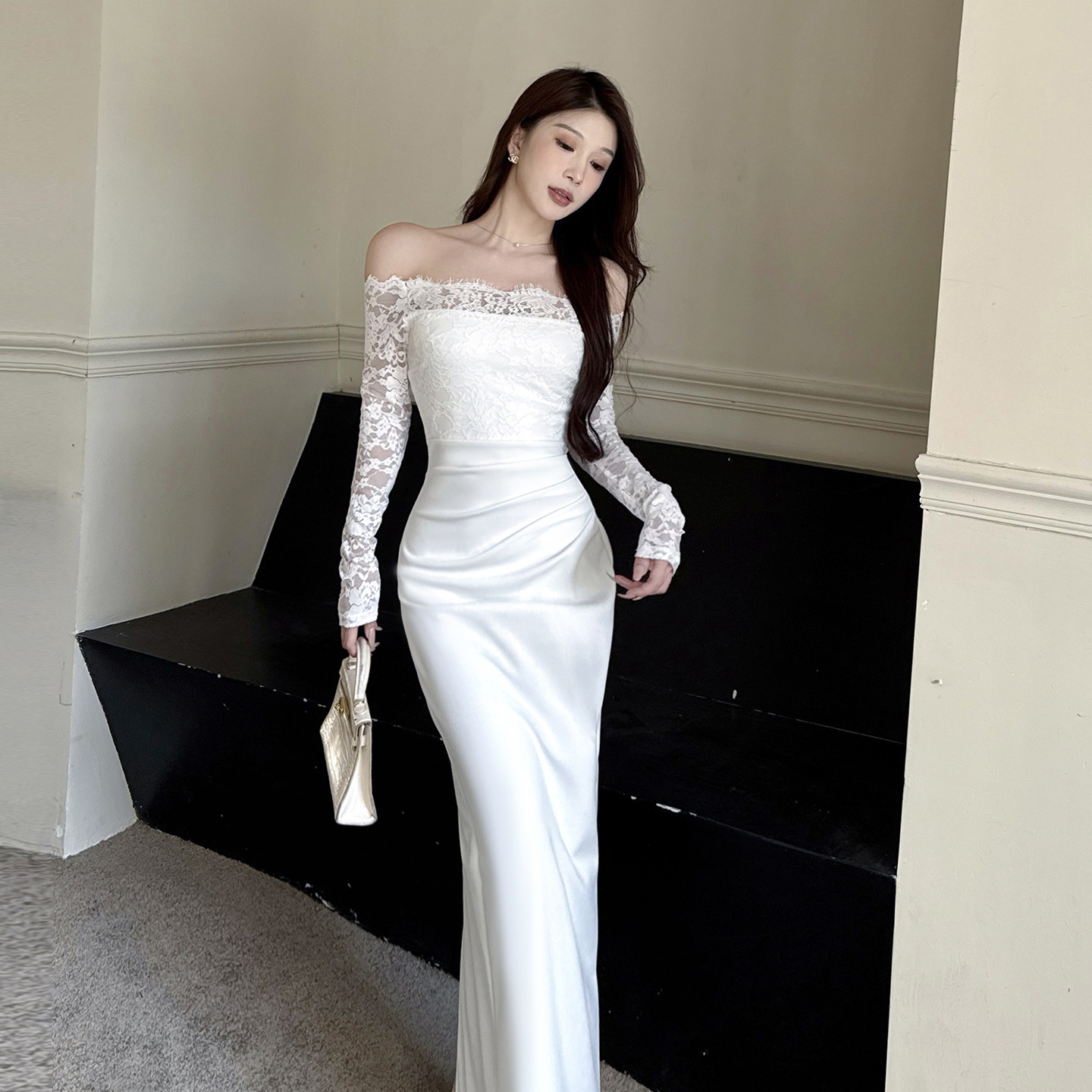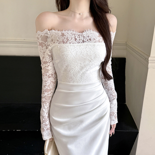 instunning法式 轻婚纱高级感一字肩蕾丝连衣裙女名媛白色宴会礼服