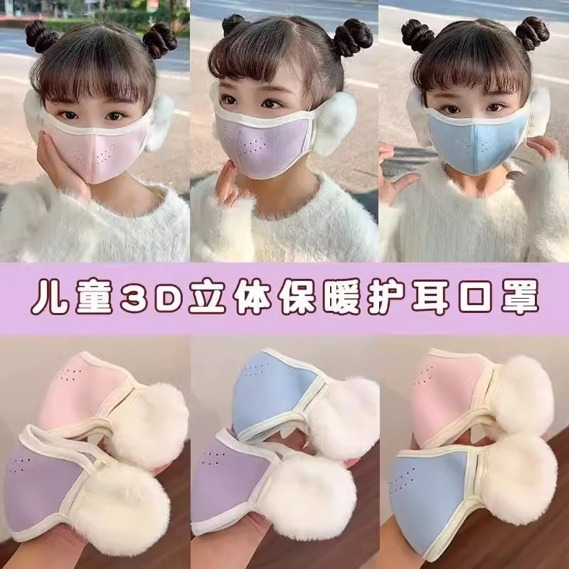 儿童冬季 护耳口罩一体男童女童保暖防风护眼角加绒学生耳暖耳罩