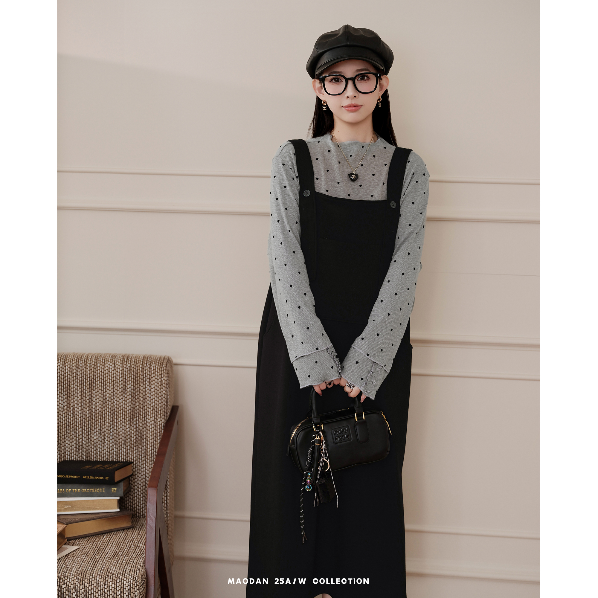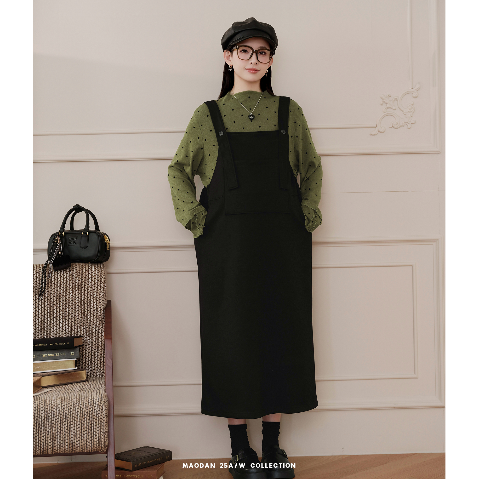 娜娜 棉 孕期穿搭孕妇装 秋冬时尚 猫单 背带裙套装 抹茶摩卡