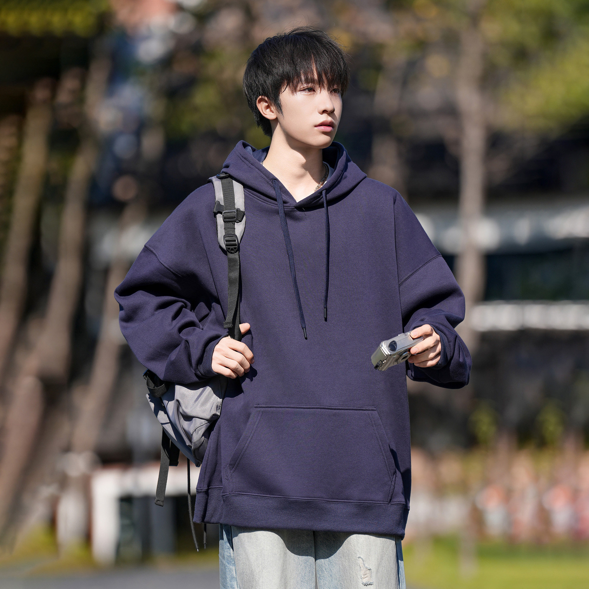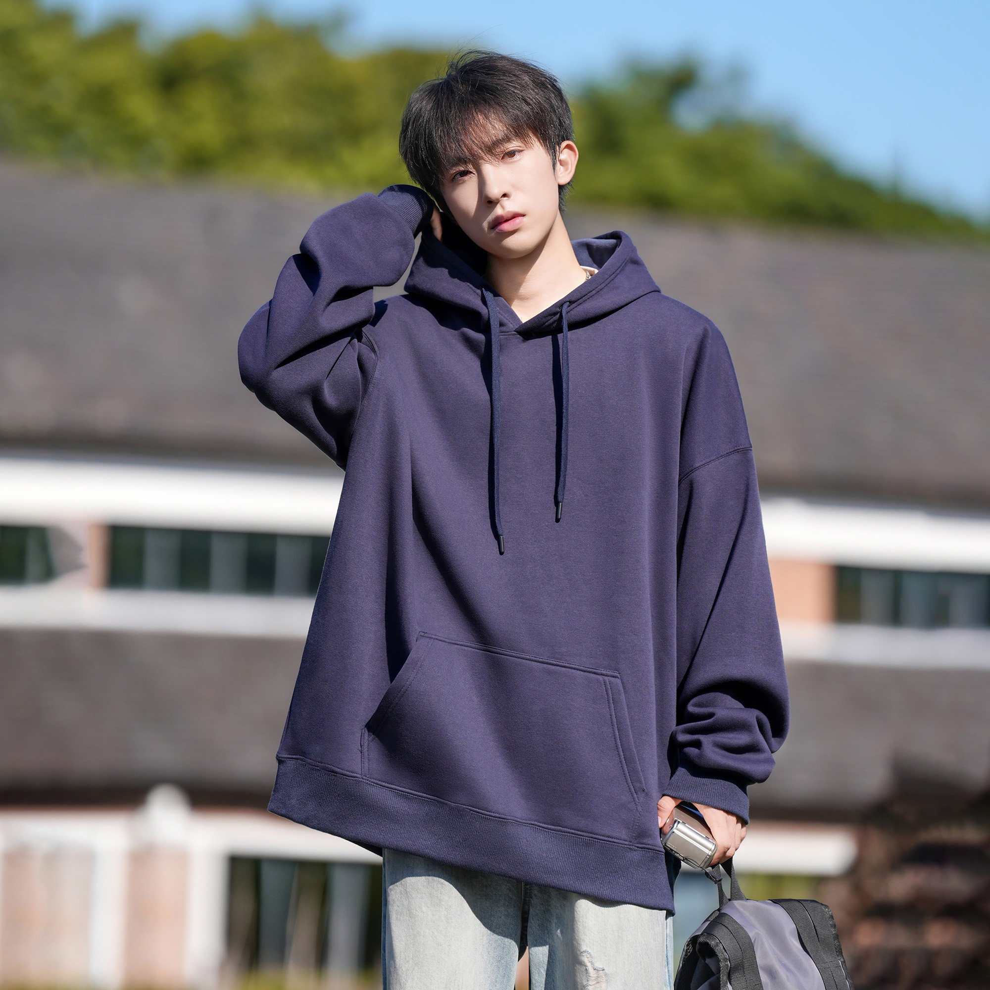 打底内搭加绒加厚上衣 重磅无帽衣服长袖 美式 立领半拉链卫衣男秋季