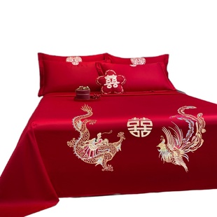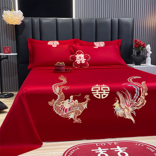 大红色婚庆床单单件结婚用喜庆龙凤枕套三件套喜字刺绣酒店新婚嫁