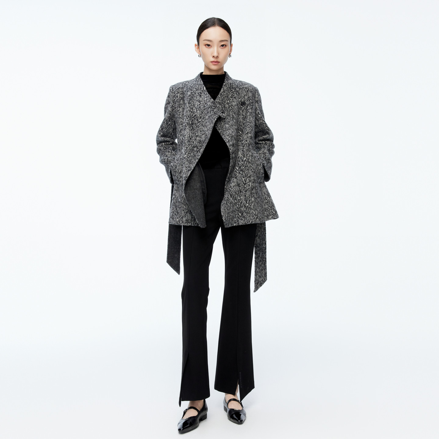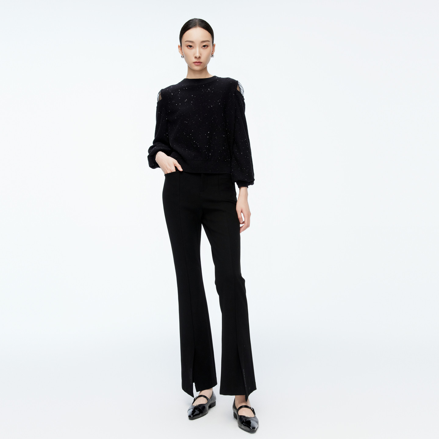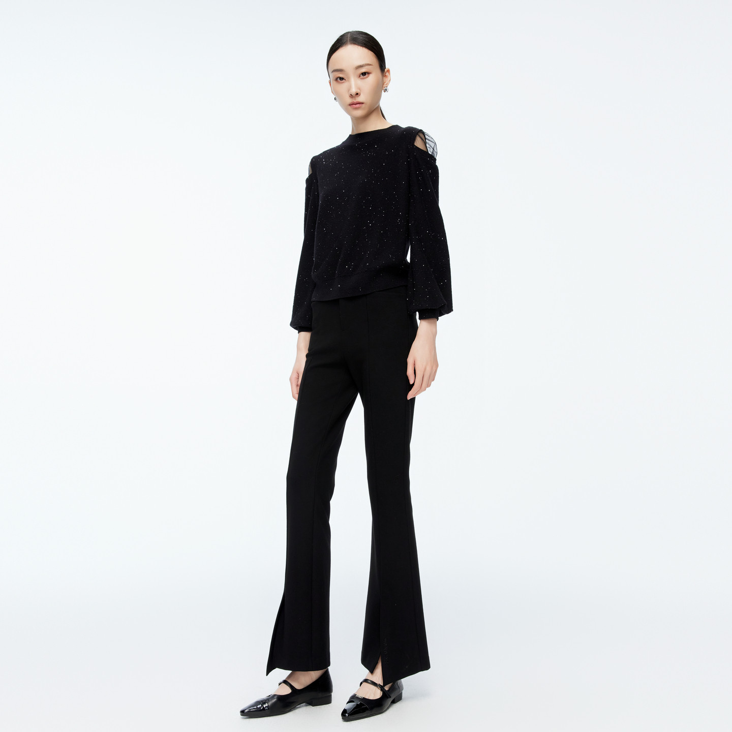 女士高腰微喇长裤 黑色显瘦喇叭裤 1244P10DM2 新品 婉甸2025年冬季