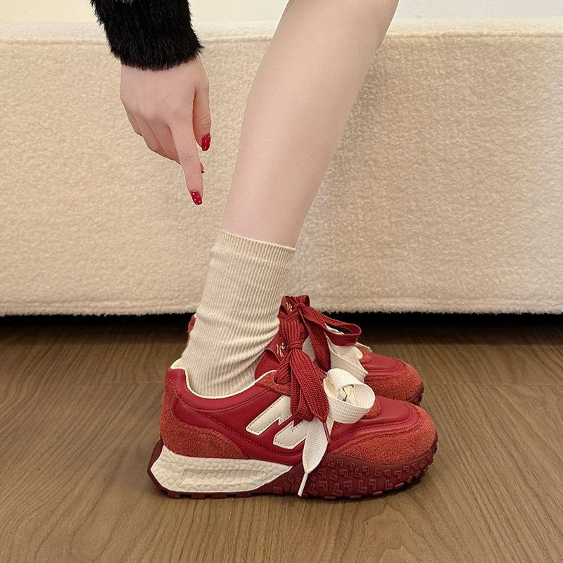 子德训鞋 红色内增高7cm厚底阿甘鞋 百搭运动休闲鞋 春季 女2026新款
