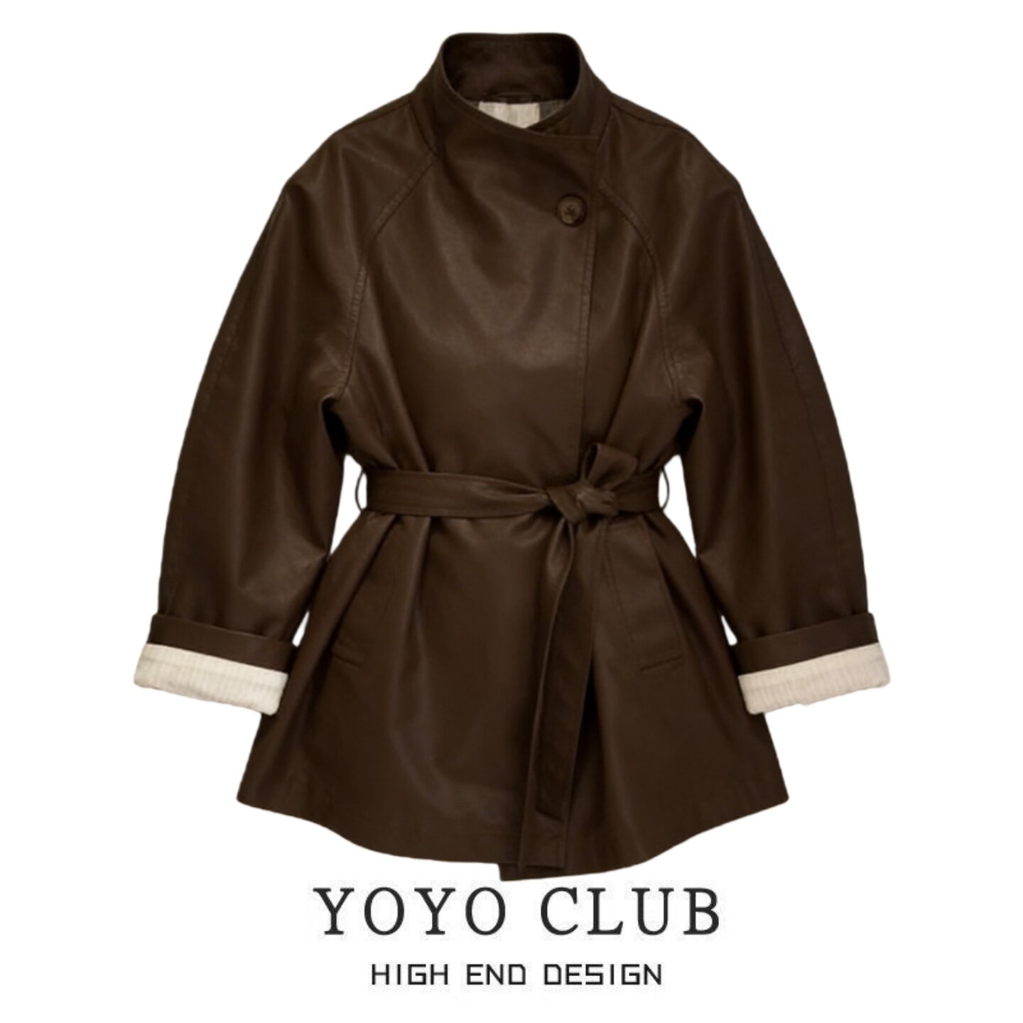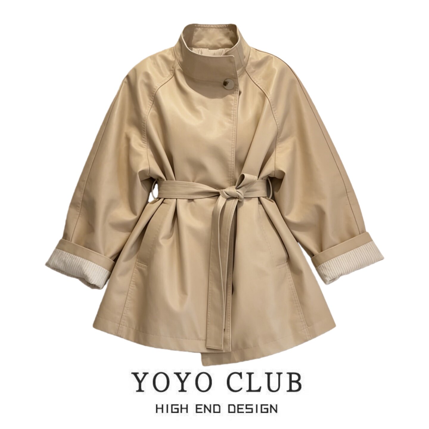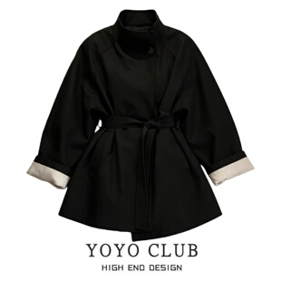 品牌折扣英伦风洋气系带收腰外套女2026年大码 胖MM廓形显瘦风衣潮