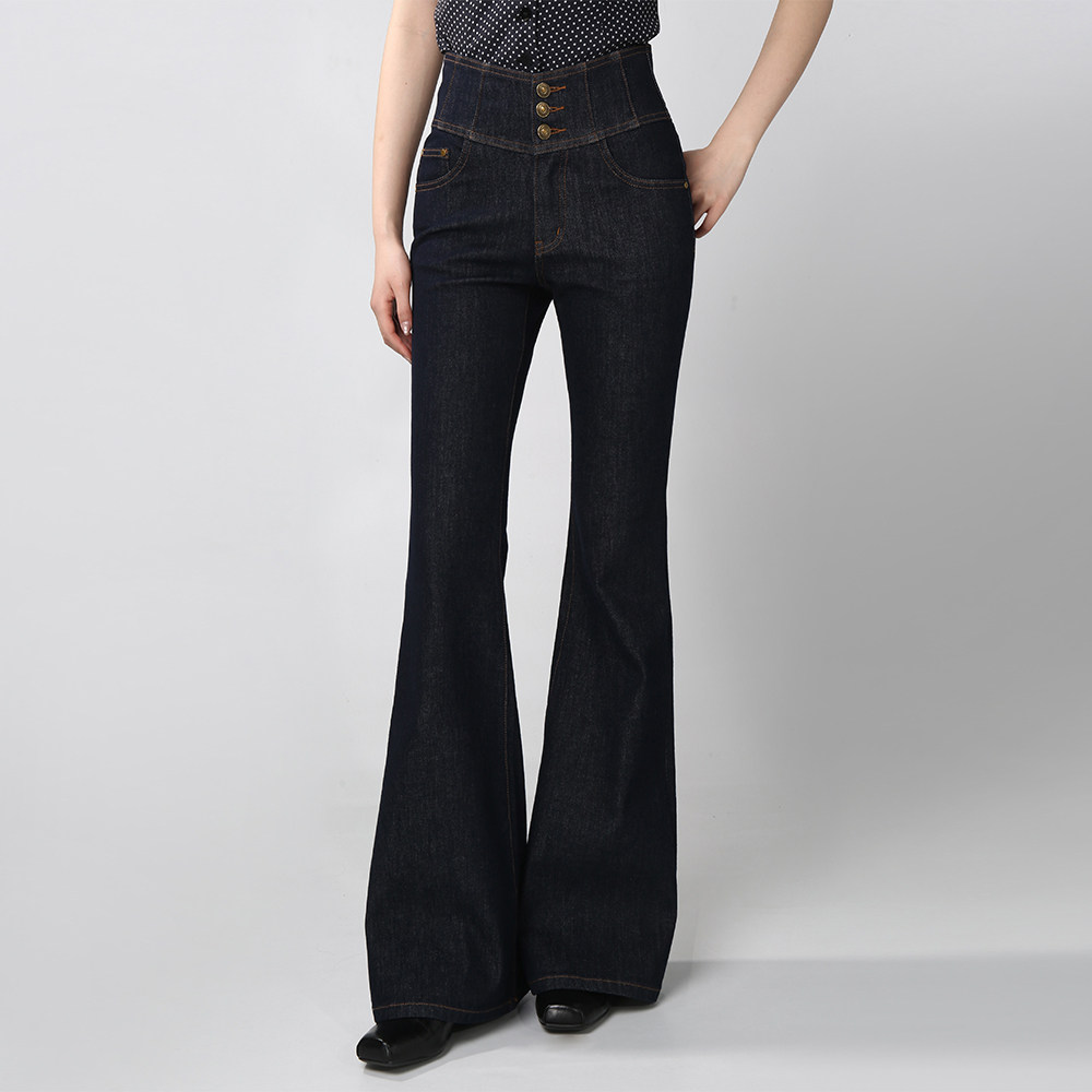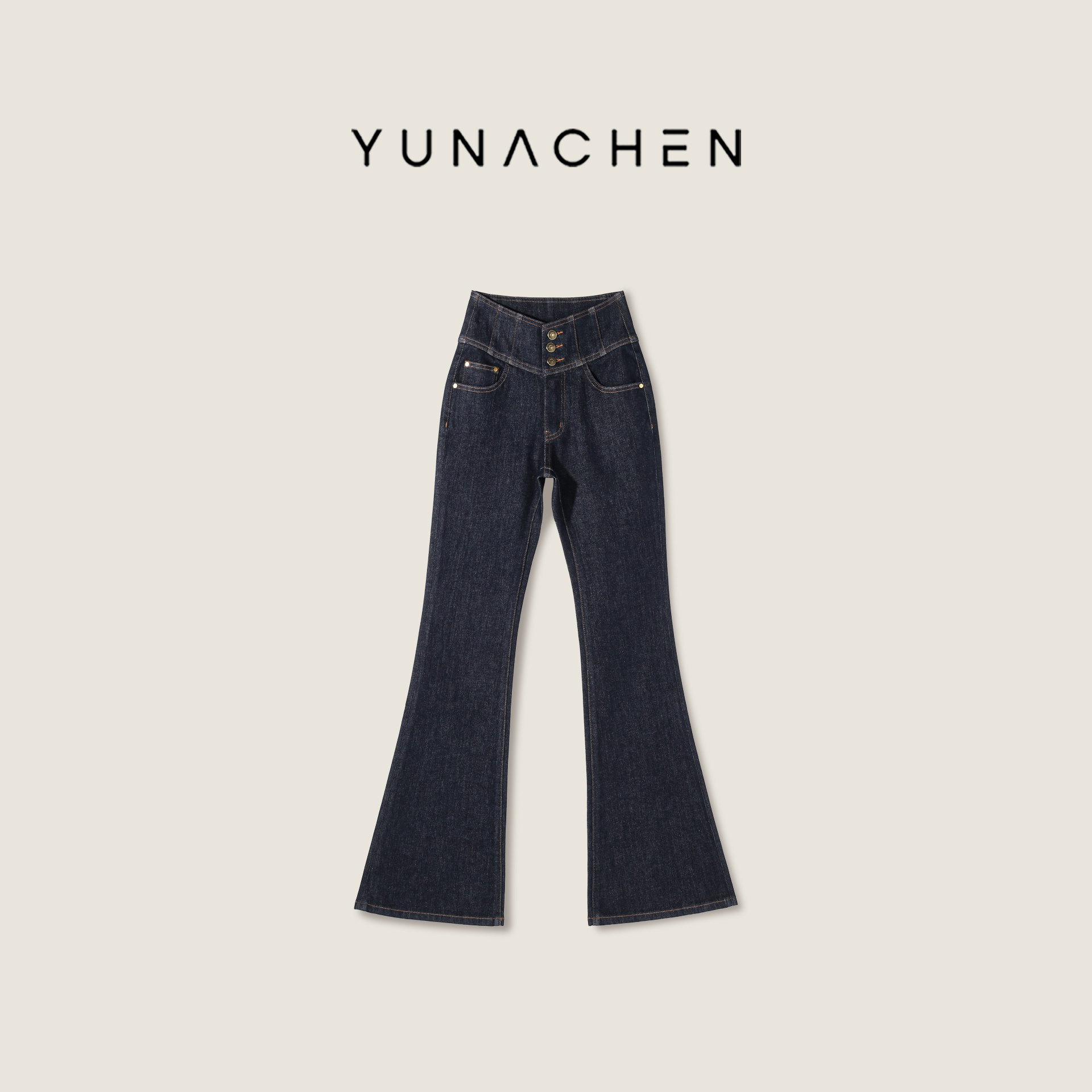 超高腰腰封弹力喇叭牛仔长裤 菠萝宝宝yuna 新款 春季 女 小岛微风
