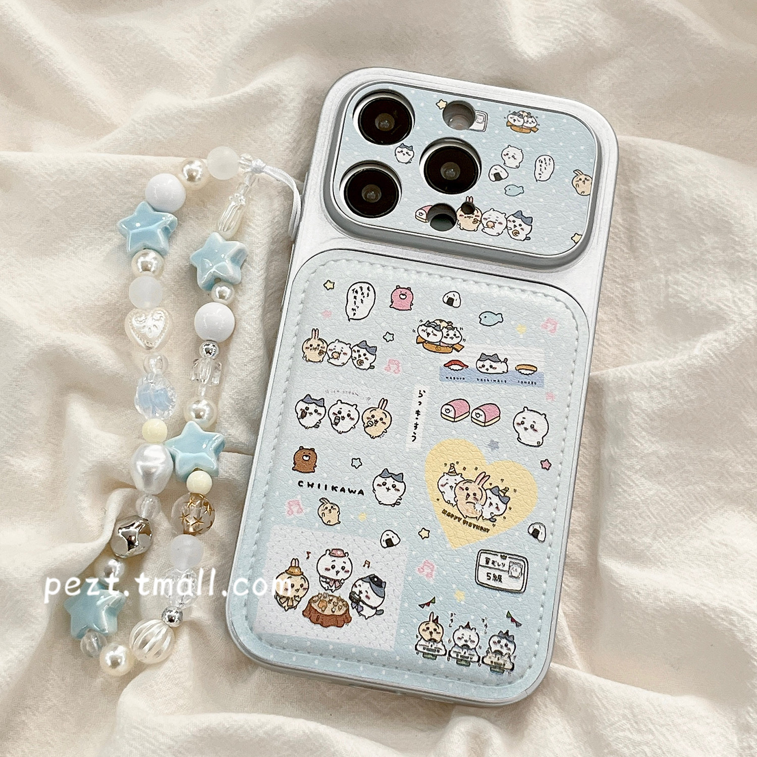 可爱卡通吉伊卡哇适用苹果17手机壳皮质网红iphone16promax带手链17promax新款 15防摔14硅胶软套16女萌系全包