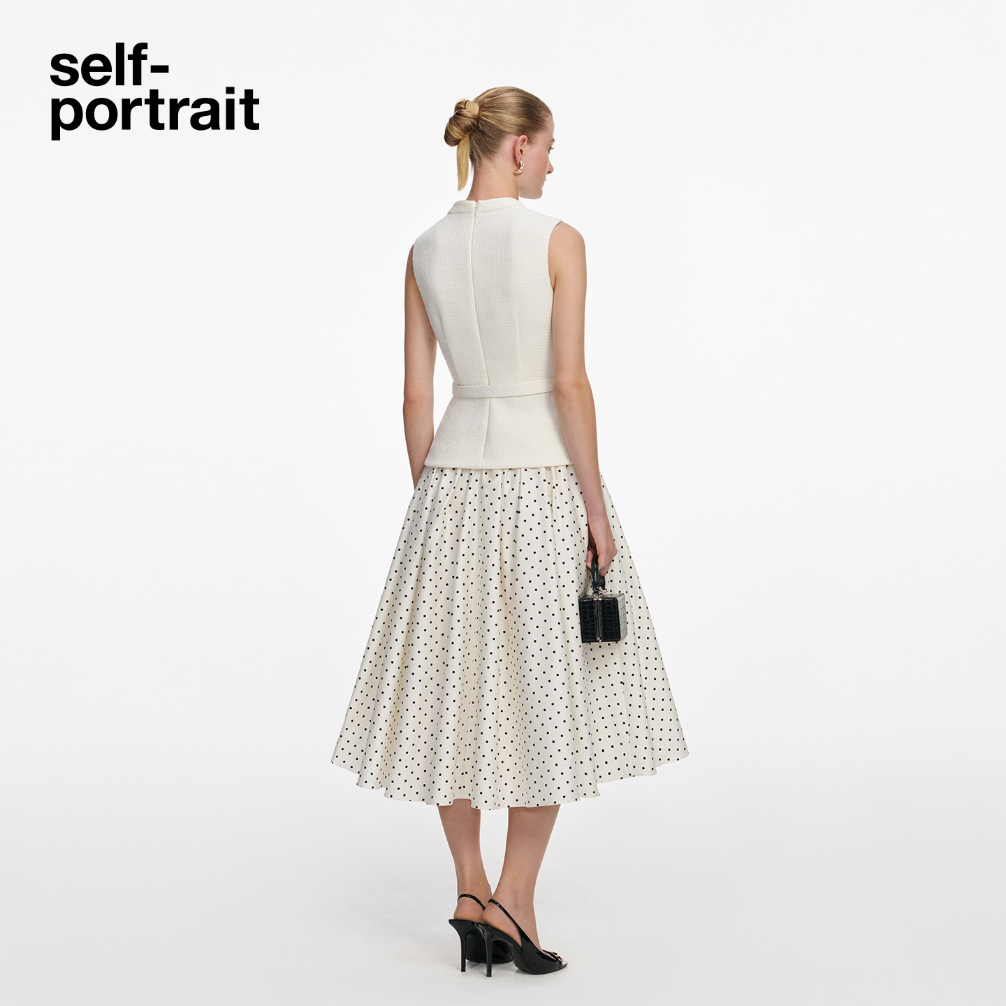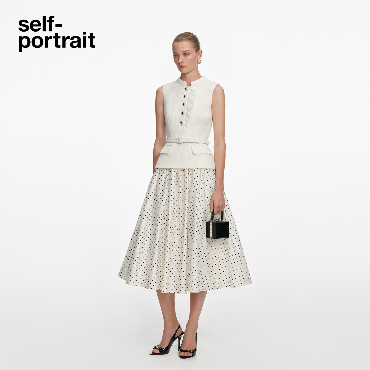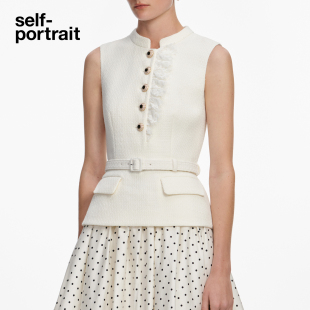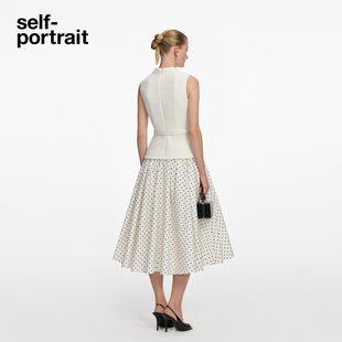 象牙白假两件粗花呢拼接波点连衣裙 2026春夏新款 self portrait