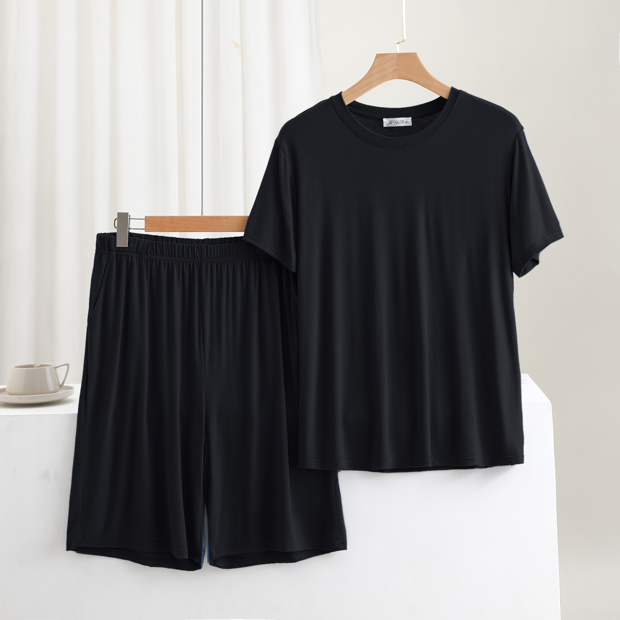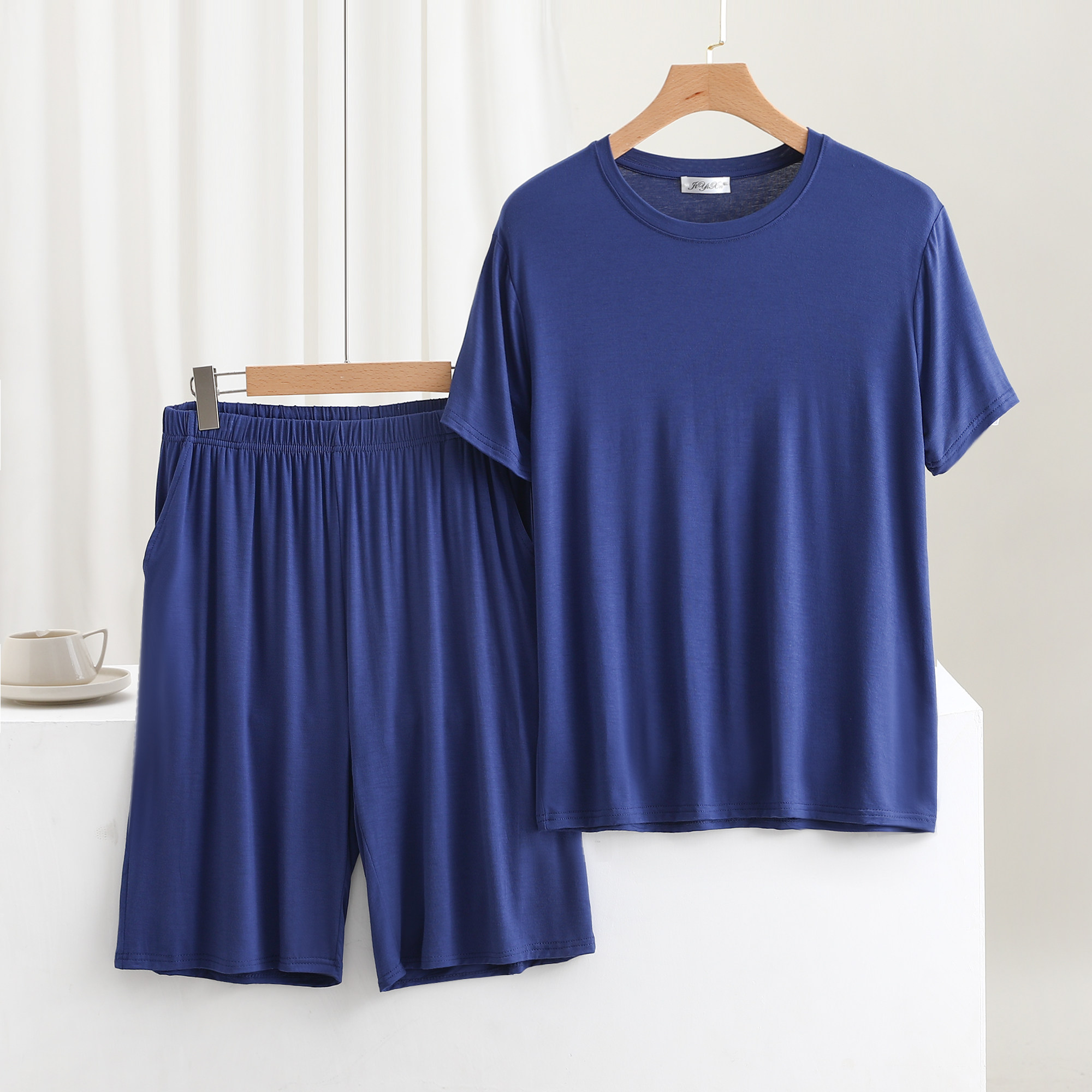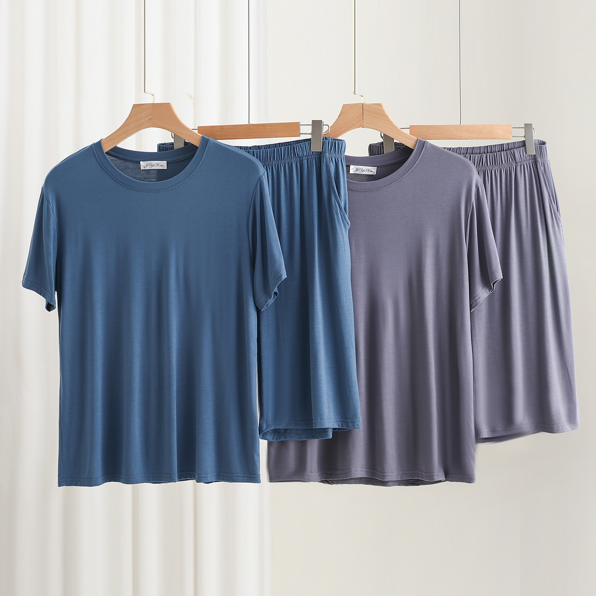 套装 薄款 男士 新款 休闲套装 弹力背心口袋七分裤 大码 精梳莫代尔大码