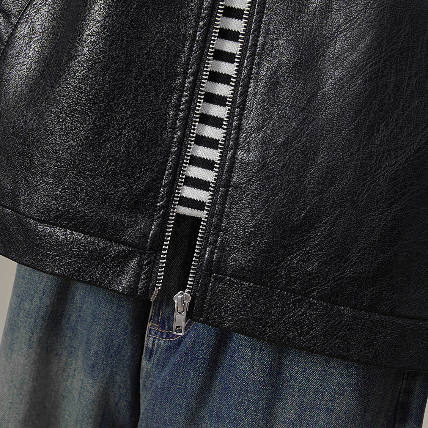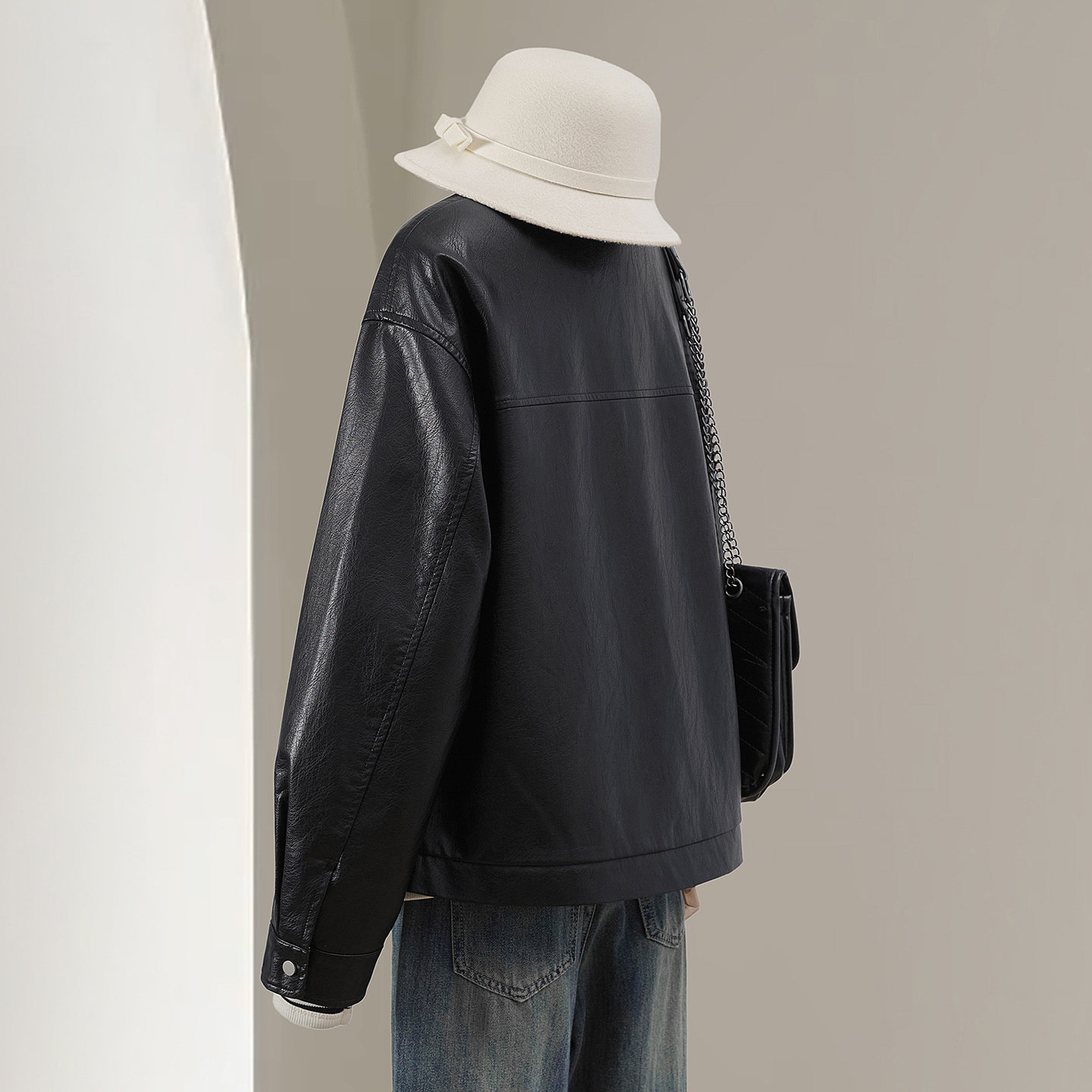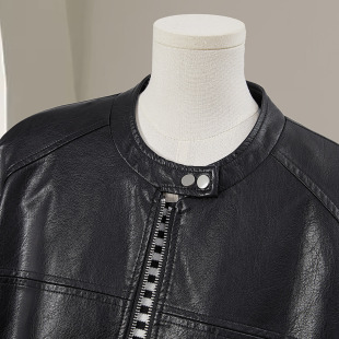 复古拼接宽松款 女装 小立领休闲机车风上衣 新款 她池PU外套2026春装