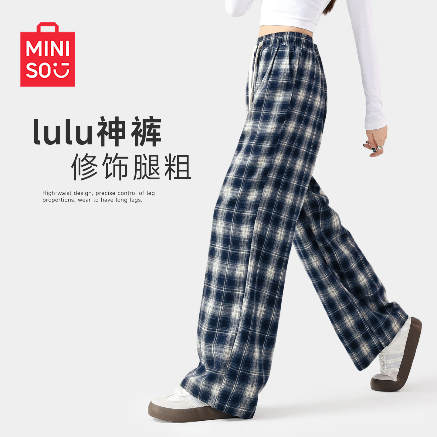 直筒休闲阔腿裤 MINISO 窄版 女小个子2026春夏新款 名创优品格子裤