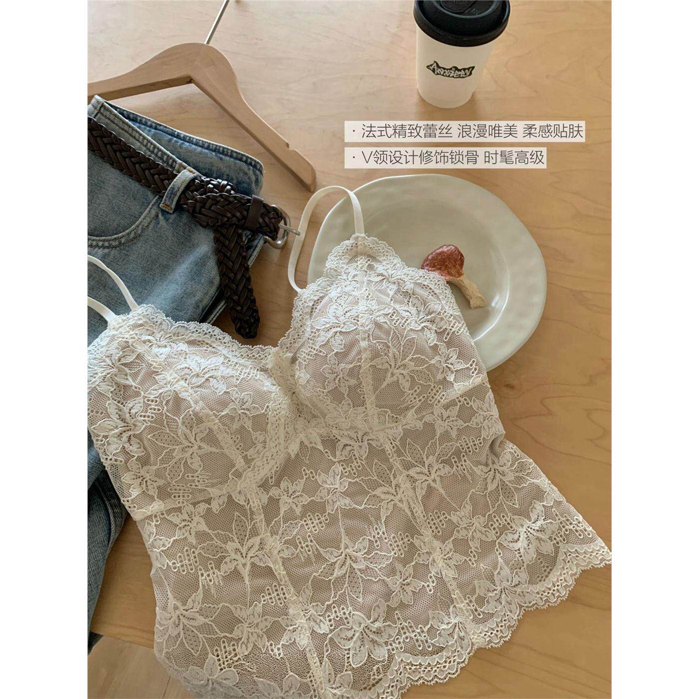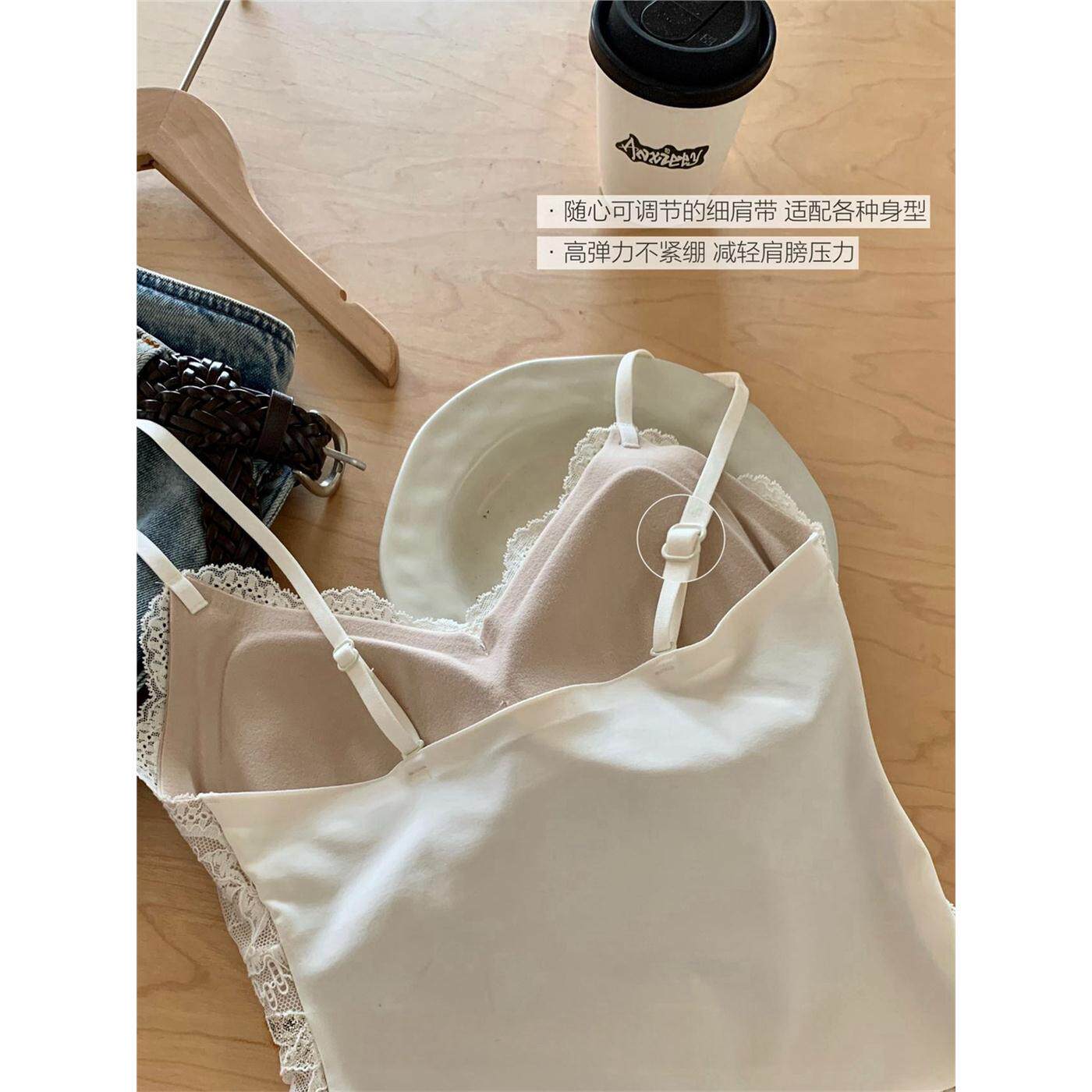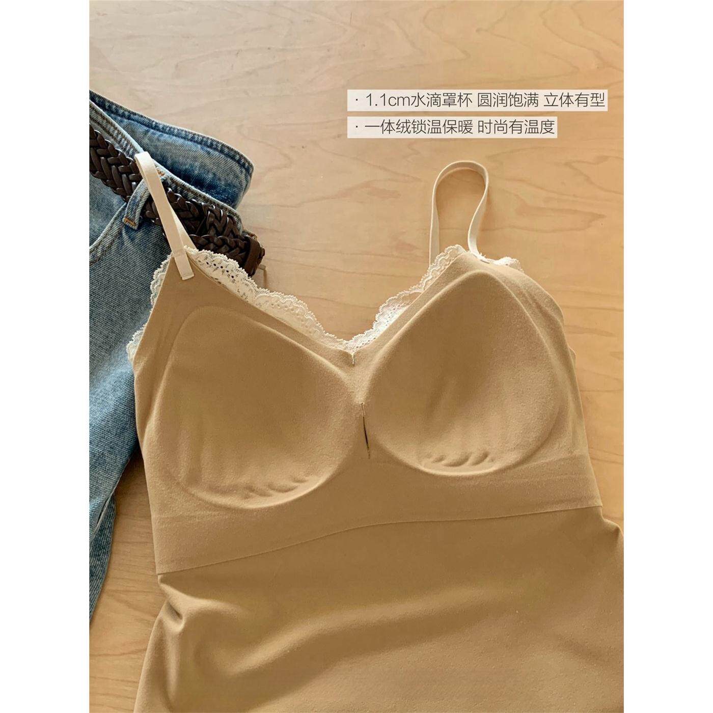 蕾丝美背吊带背心女士带胸垫磨毛加绒保暖聚拢内衣内搭外穿上衣
