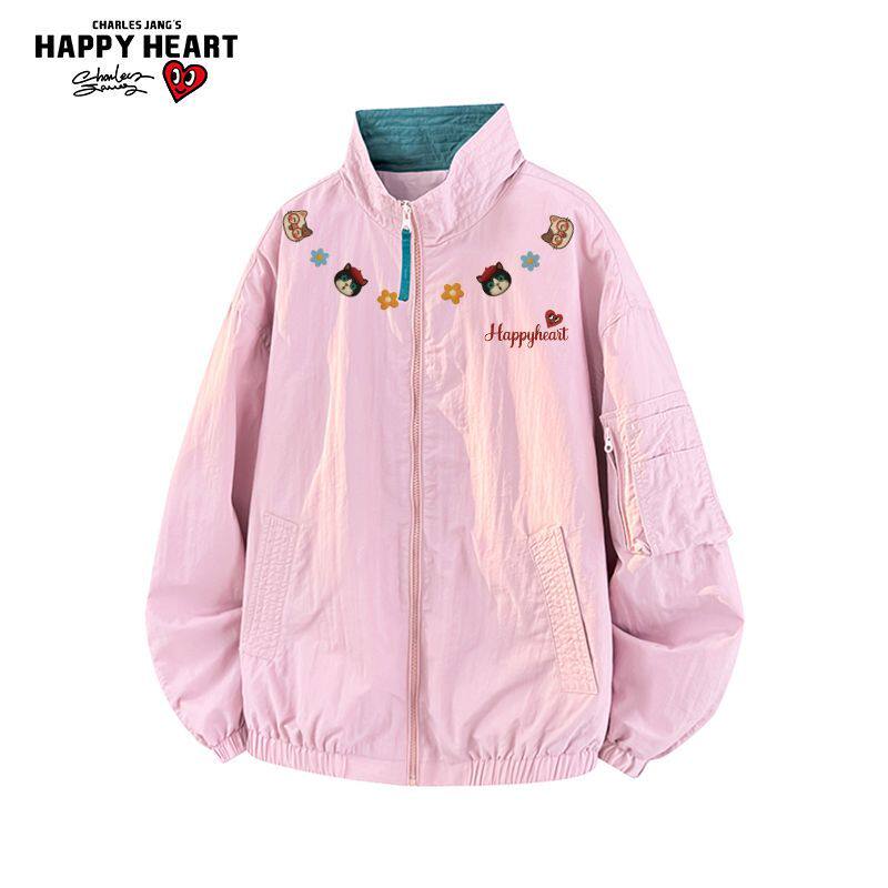 查尔斯桃心小猫印花立领飞行夹克男女春上新百搭宽松潮牌工装 外套