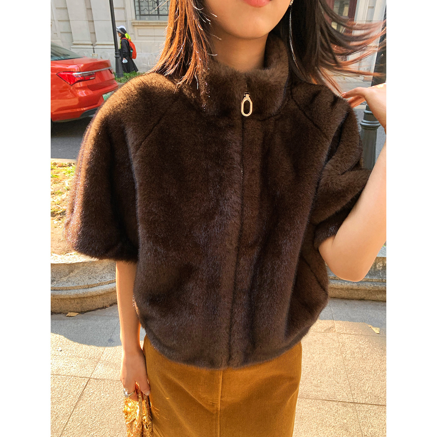 短袖 冬季 设计感保暖毛毛外套 环保皮草女外套2025年新款 今屿花花