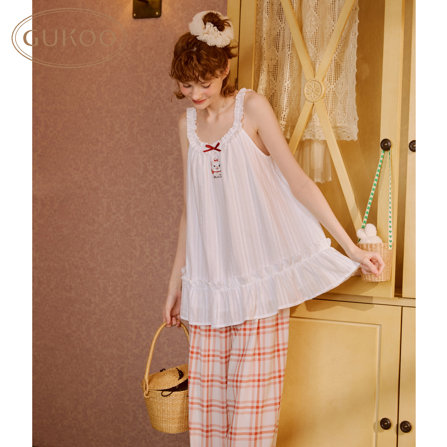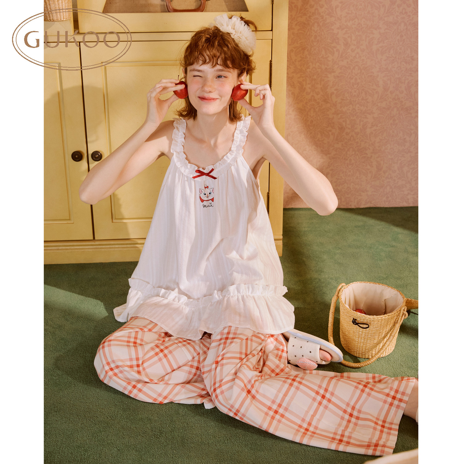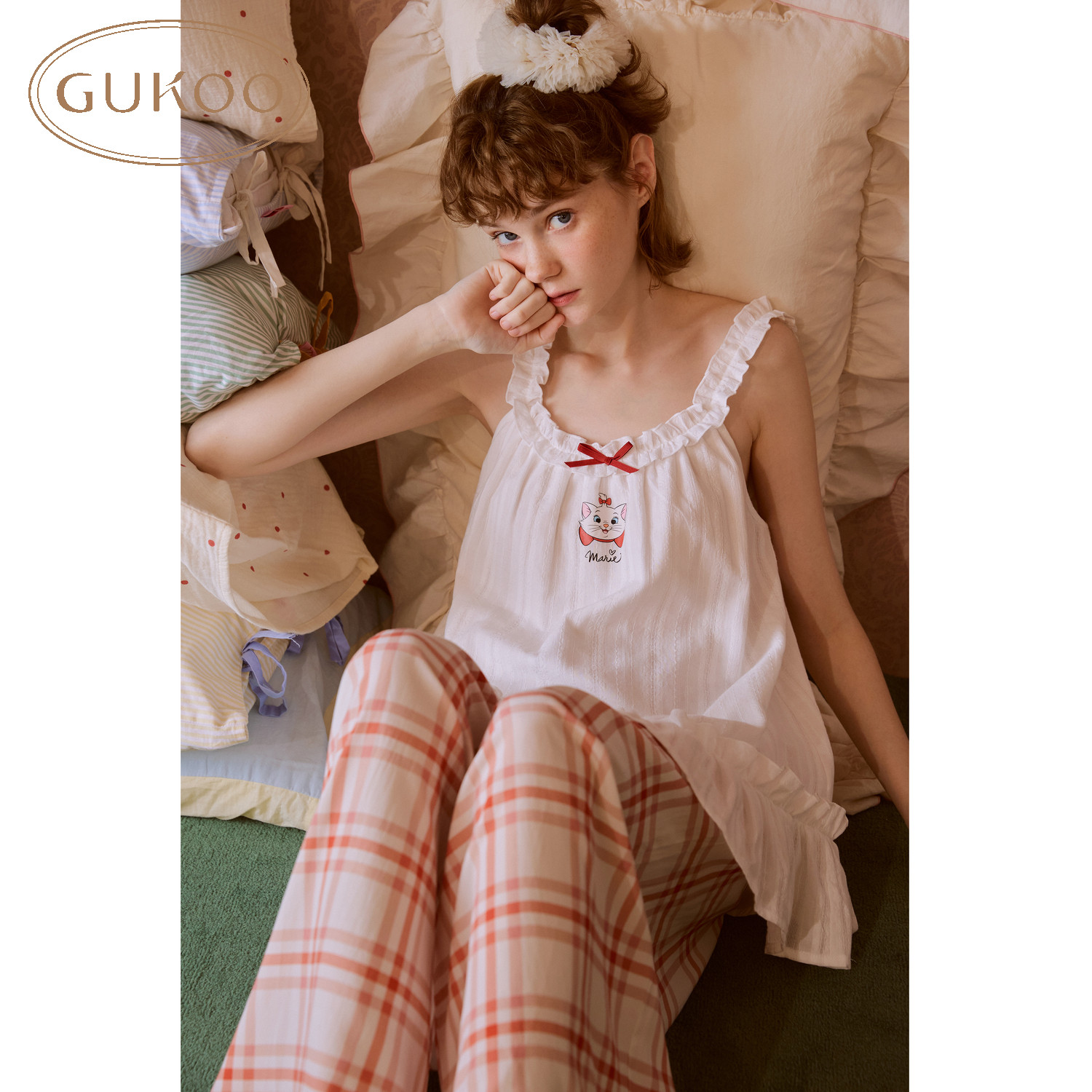 甜美女家居服吊带套装 Gukoo 果壳睡衣女春夏天丝玛丽猫联名新款