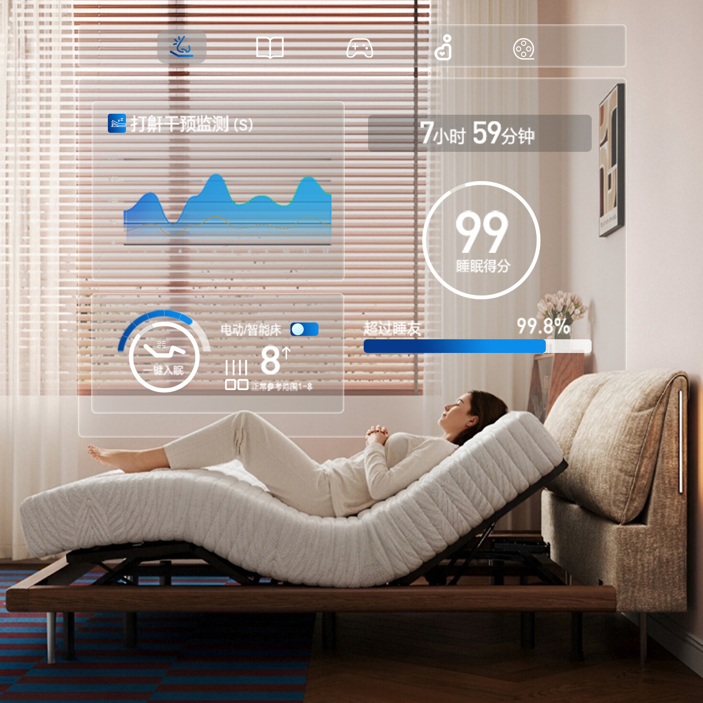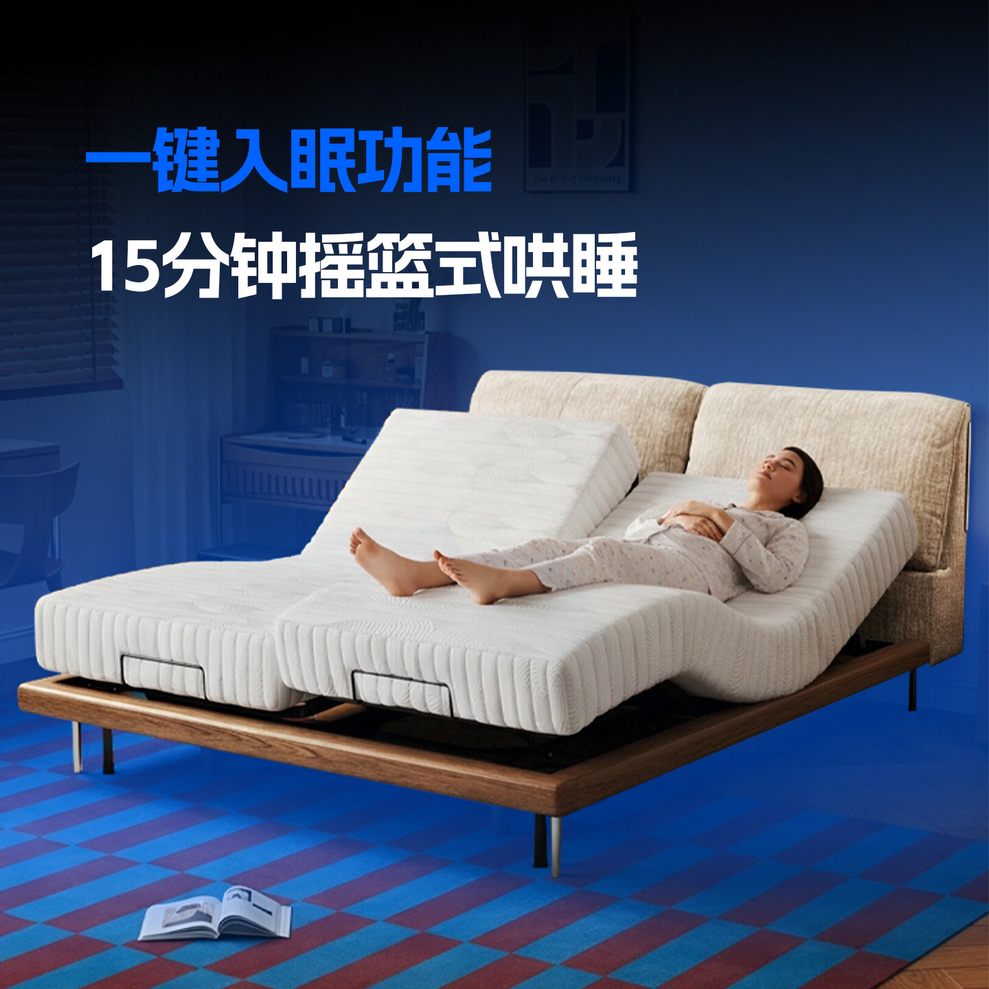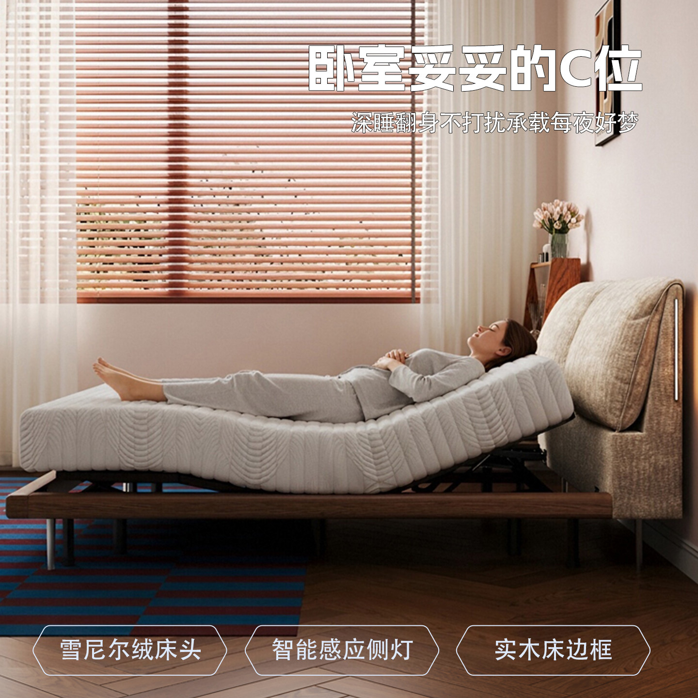 大象耳朵全自动电动智能实木雪尼尔布艺床复古双人床主卧升降按摩