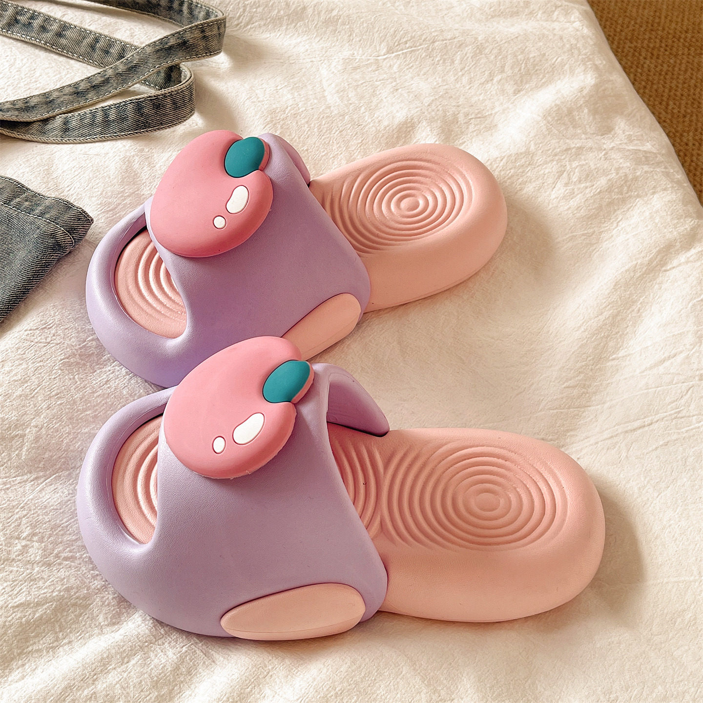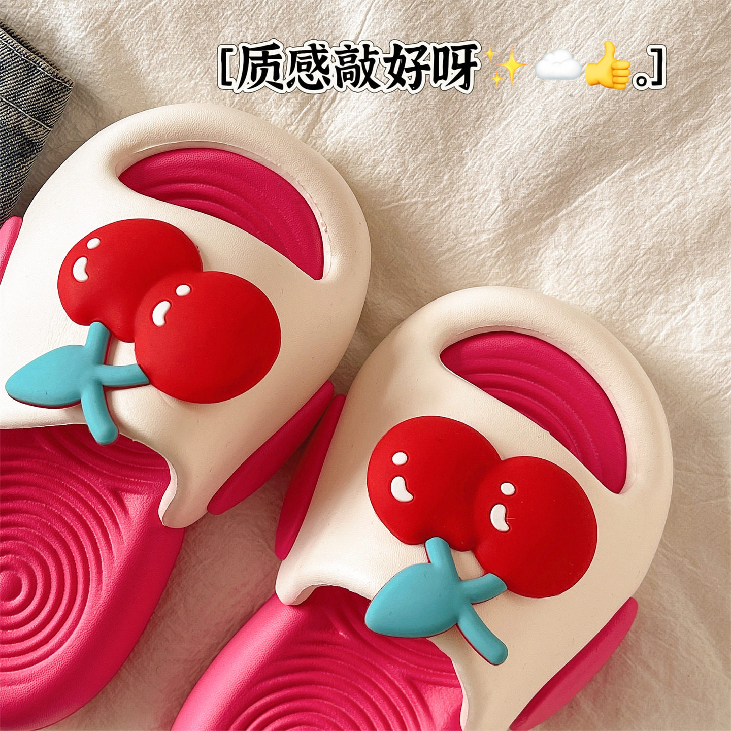 可爱樱桃一字拖女夏季 外穿防滑室内居家EVA厚底踩屎感家用凉拖鞋