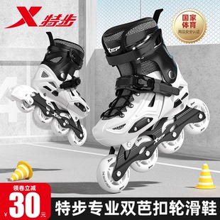 男童旱冰鞋 特步轮滑鞋 女童滑冰鞋 成人专业大小可调滑轮鞋 溜冰鞋