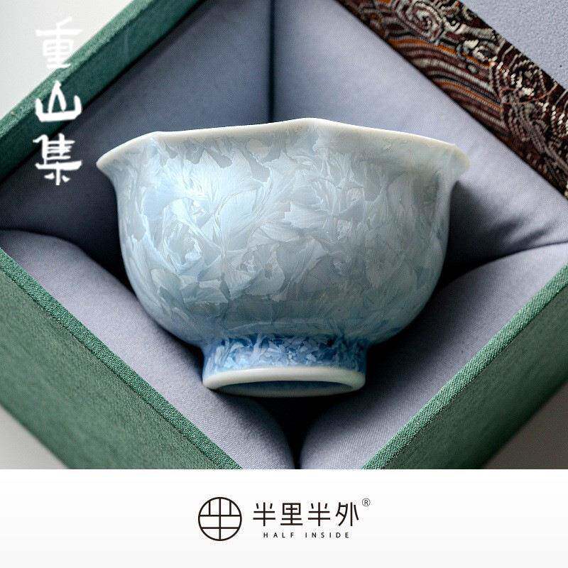 结晶主釉窑变茶花口人EUC杯单杯蓝个人专茶杯陶瓷品茗杯功用夫盏