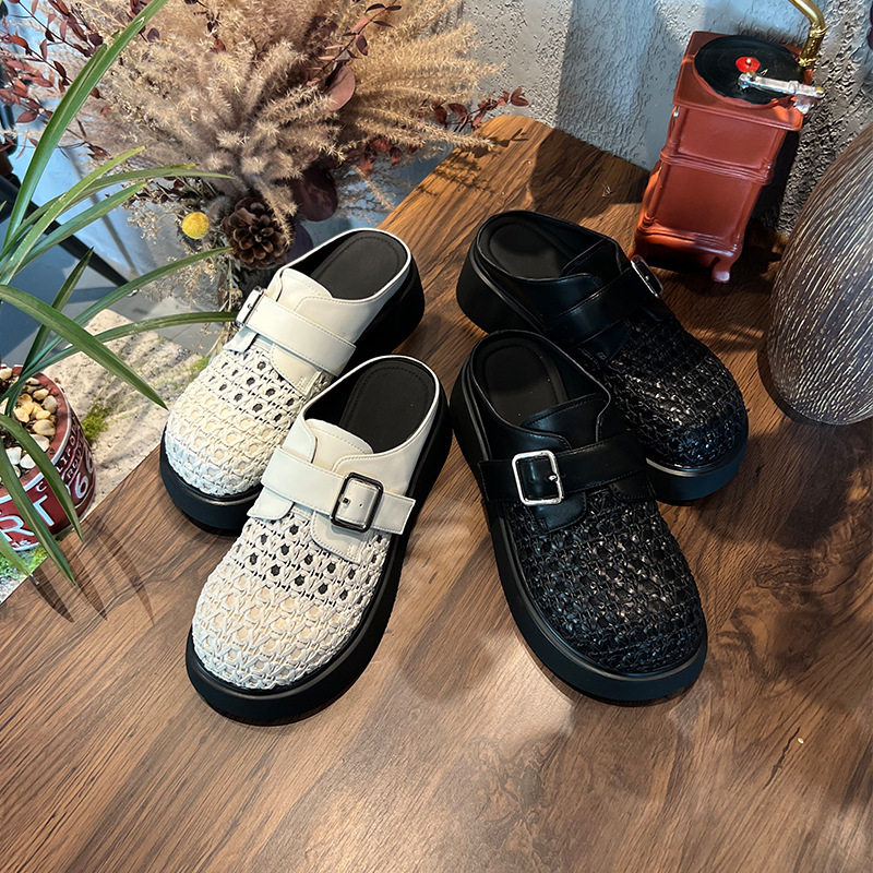 复古编织半拖休闲风法式 女2026春夏新款 凉拖 垫包头拖鞋 头层羊皮鞋