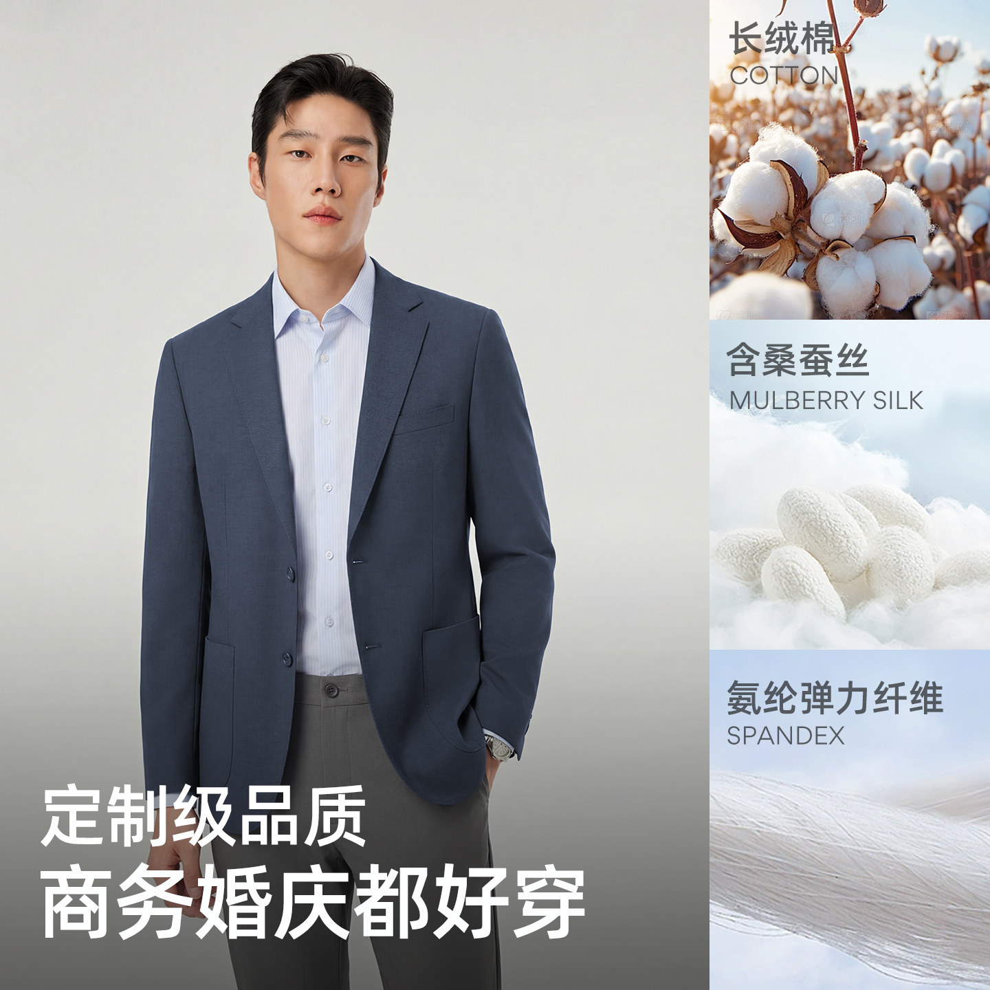 凉感防晒 弹力修身 抗菌 男士 商务针织棉桑蚕丝西服 雅戈尔春季