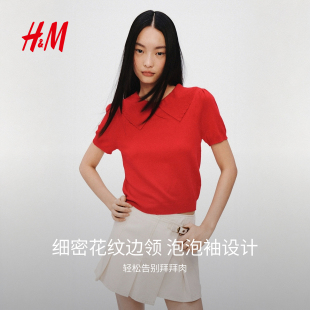 毛针织衫 套衫 2026春季 圆领短袖 毛衣出游上衣1323988 新款 HM女装