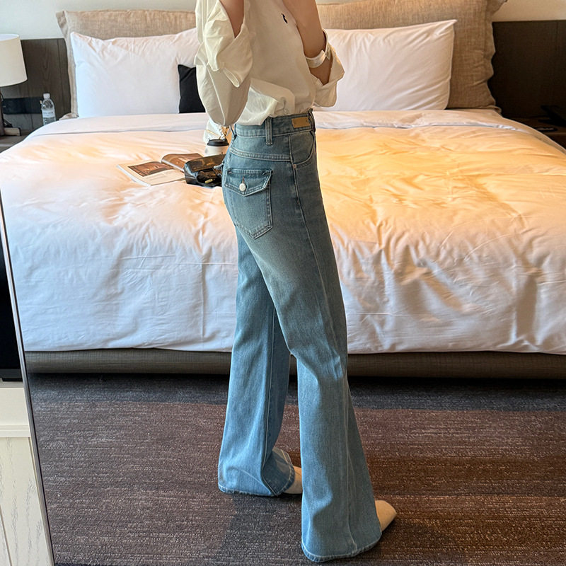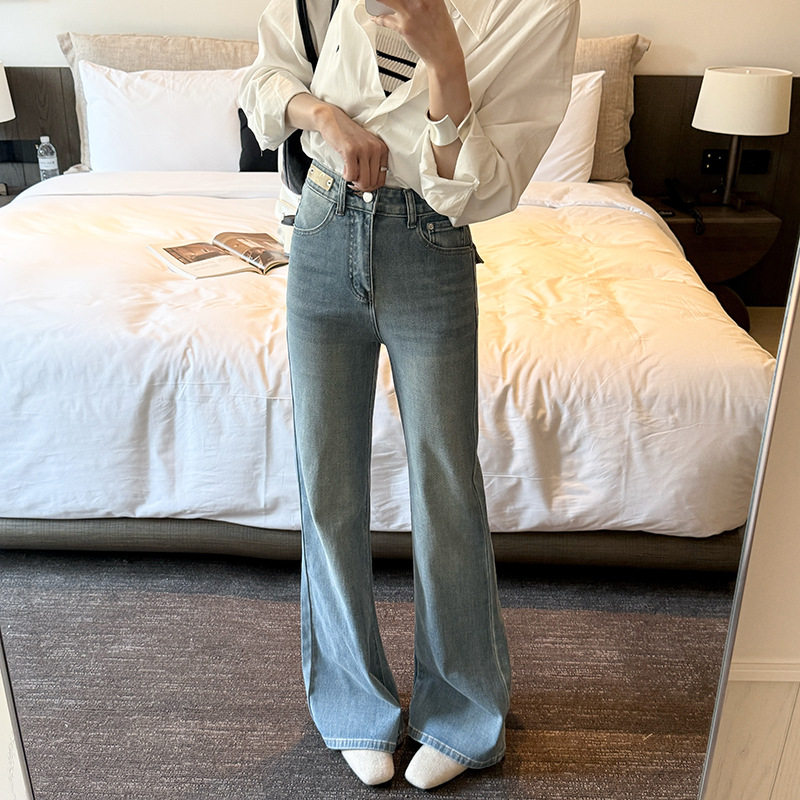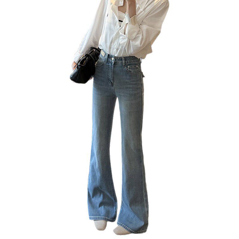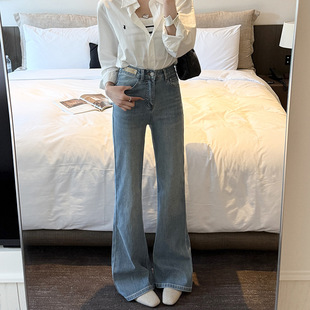 流行休闲简约高腰弹力微辣裤 女2026春款 辣妹喇叭牛仔裤 十三行女装