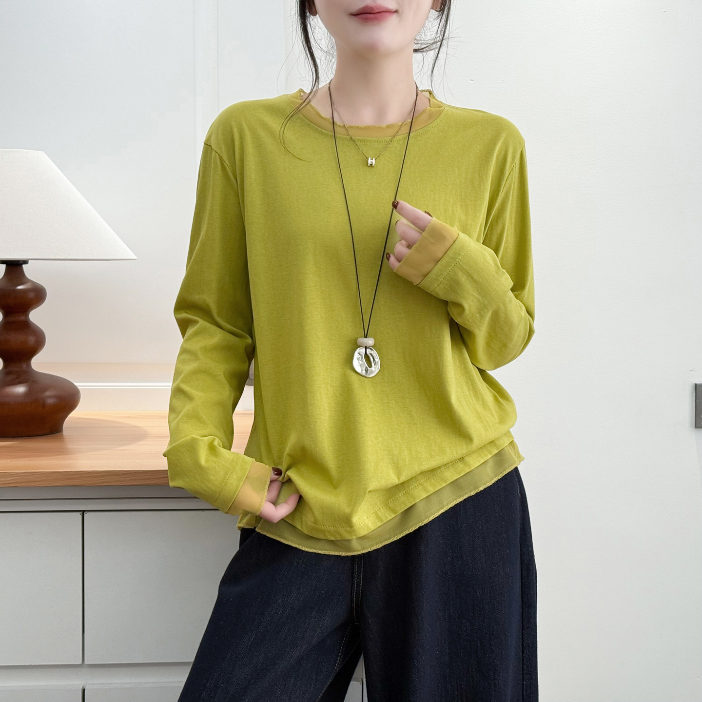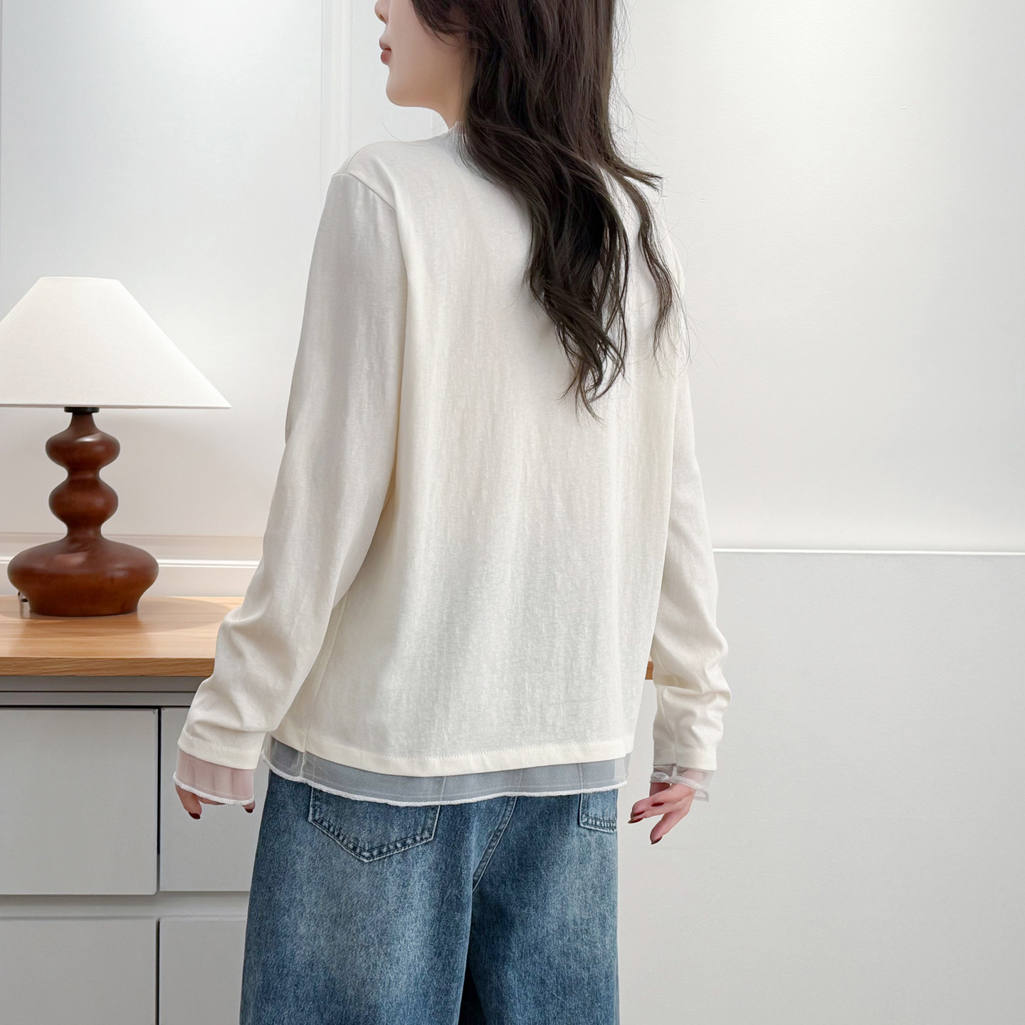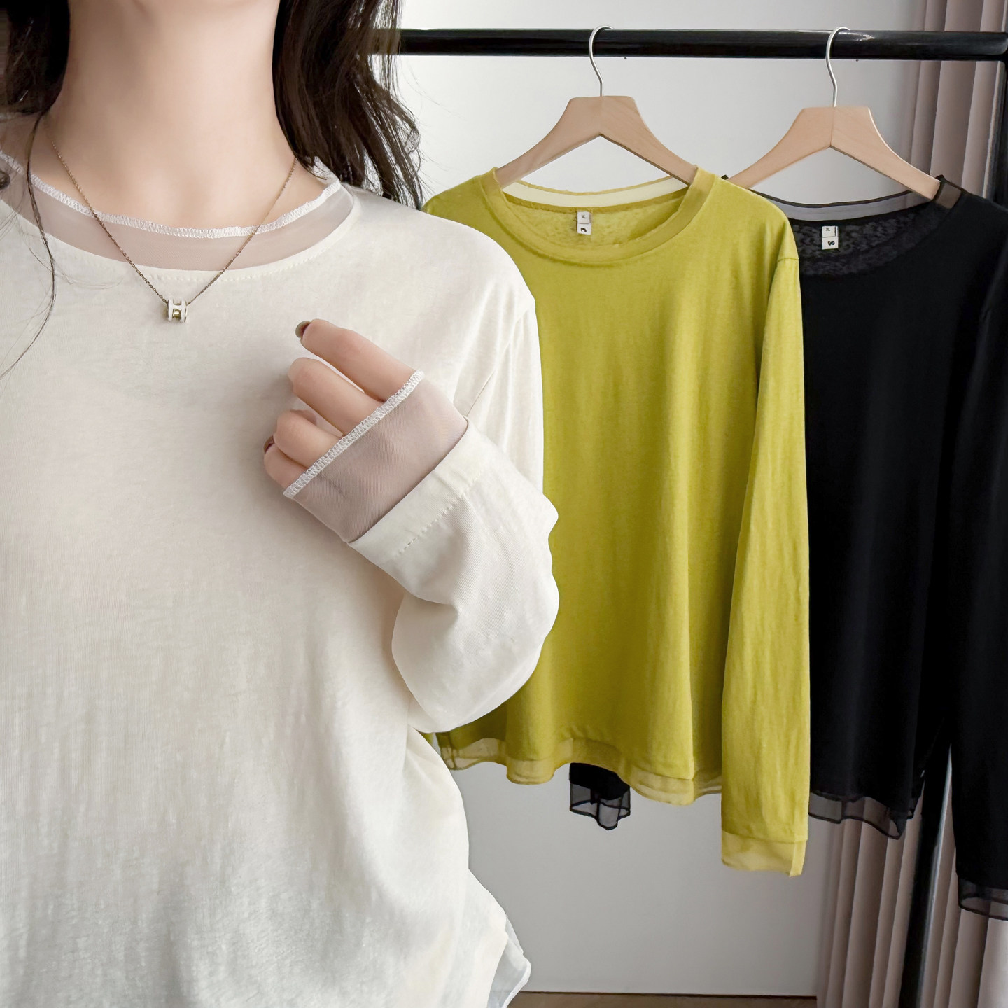 胖mm长袖 洋气网纱拼接打底衫 t恤2026年春季 200斤时尚 新款 女士大码